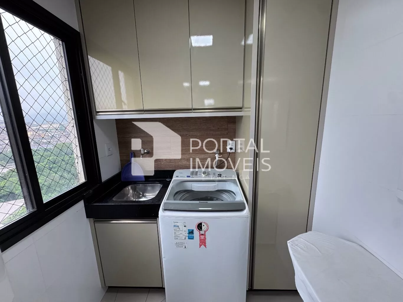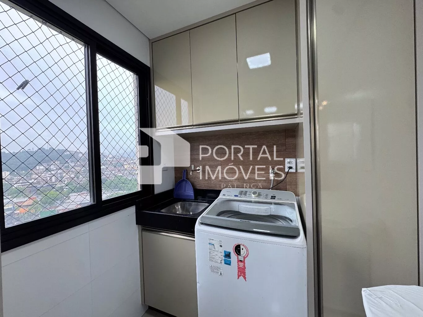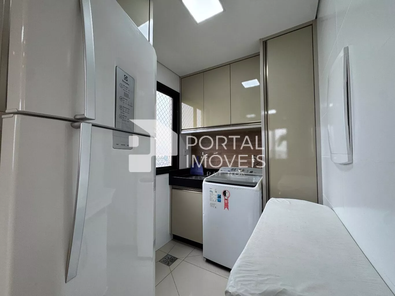 🧺 Área de serviço com armário planejado e máquina de lavar