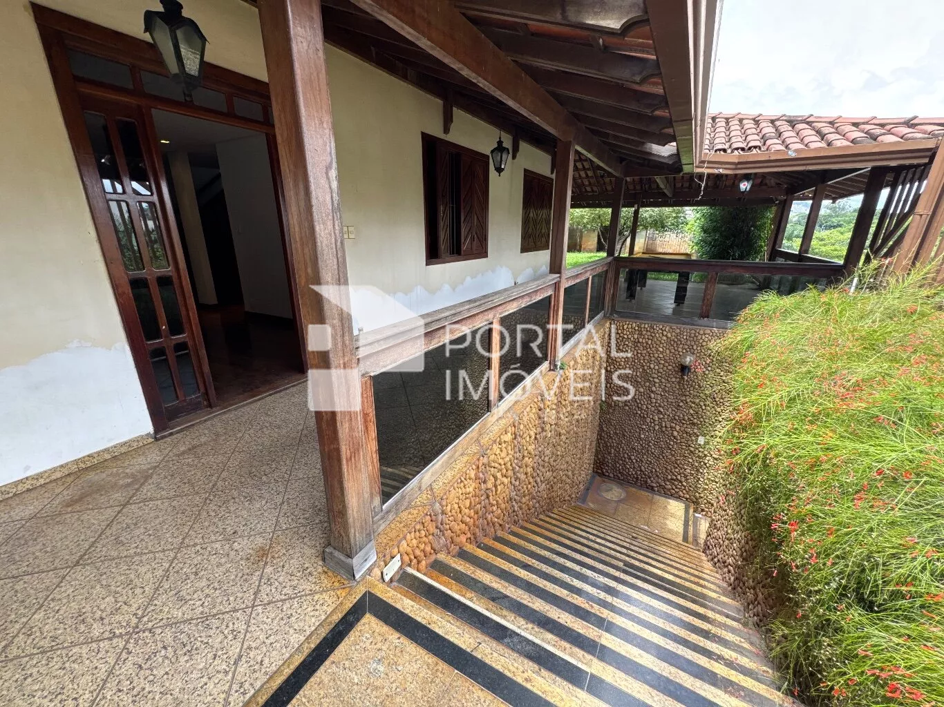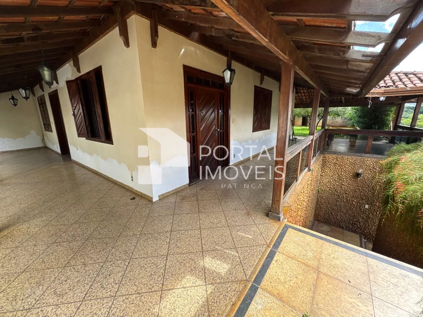 🌤️ Varanda ampla no entorno da casa, com telhado colonial