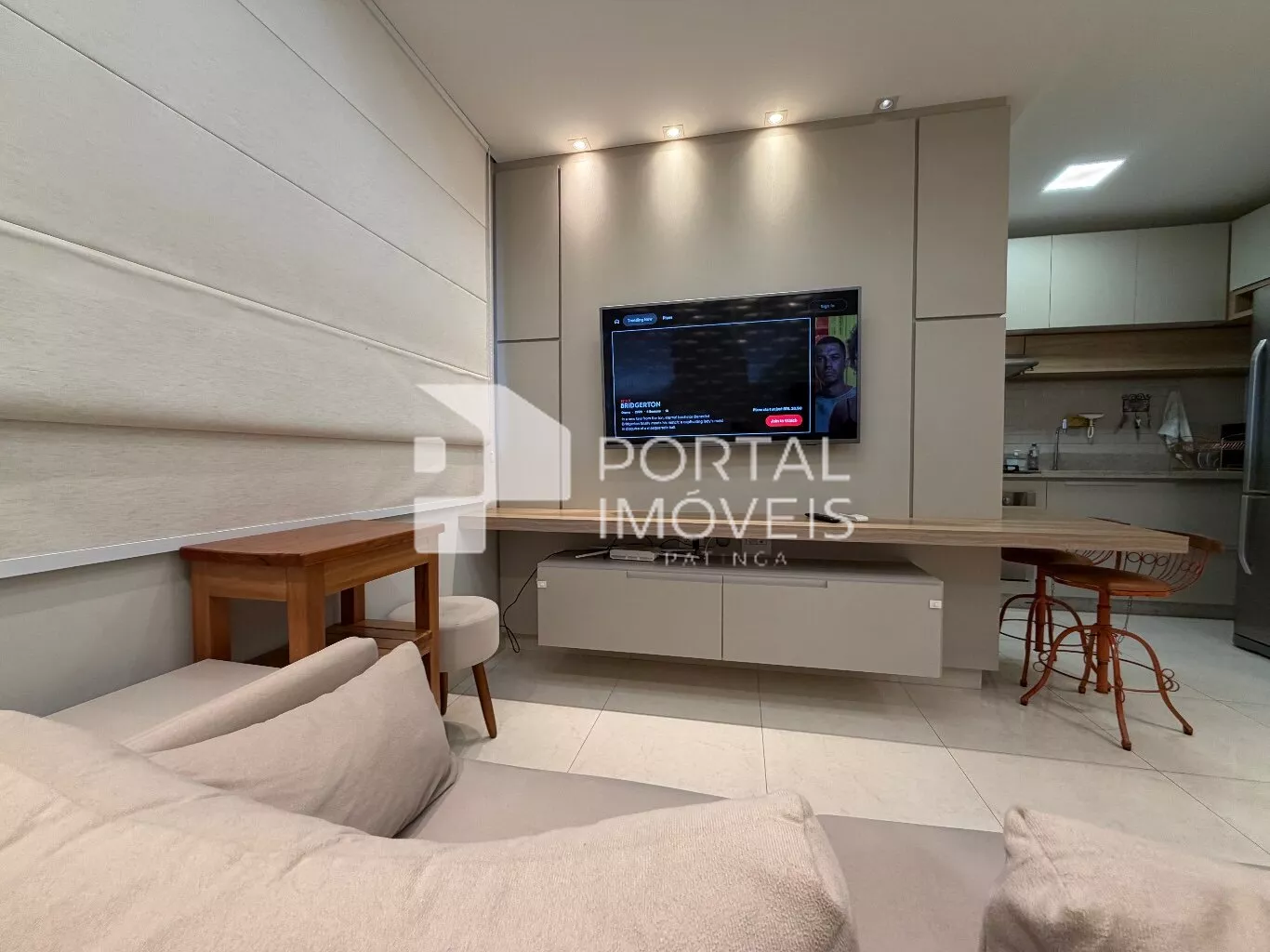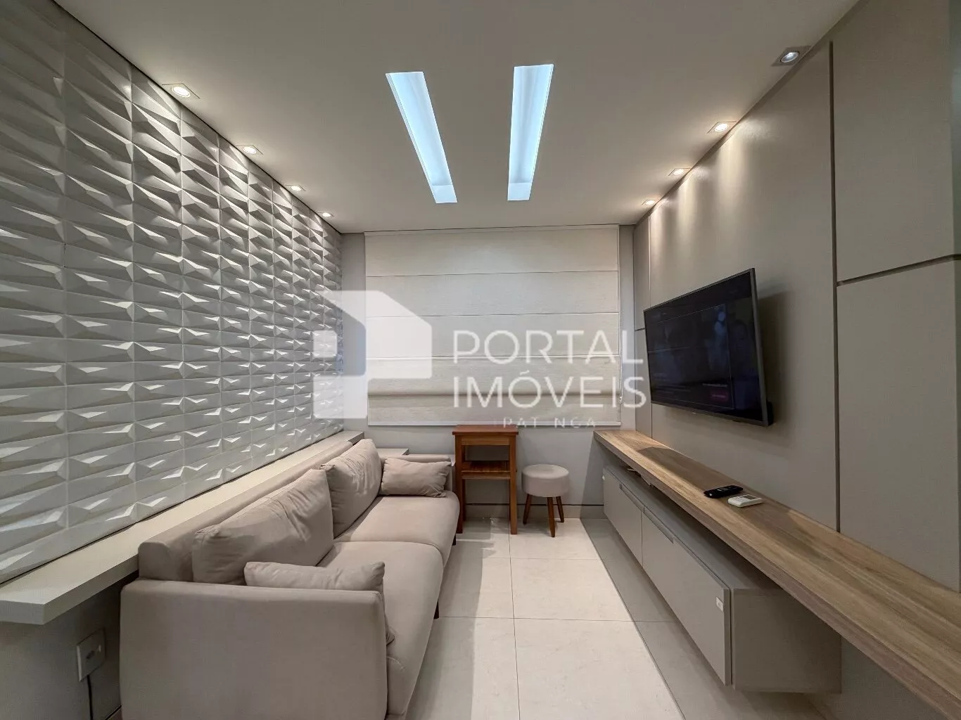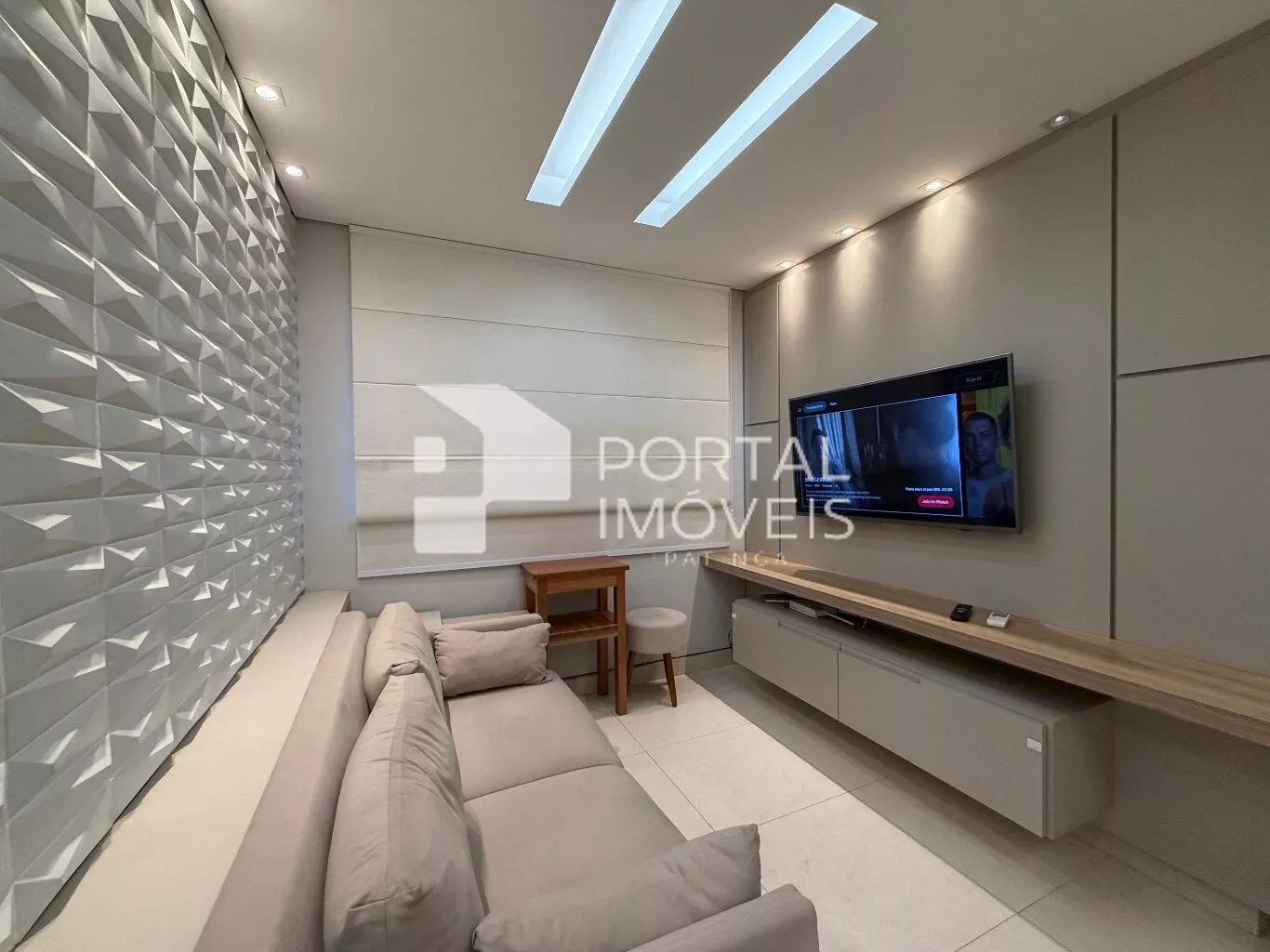 📺 Sala de TV com sofá, painel planejado e televisão
