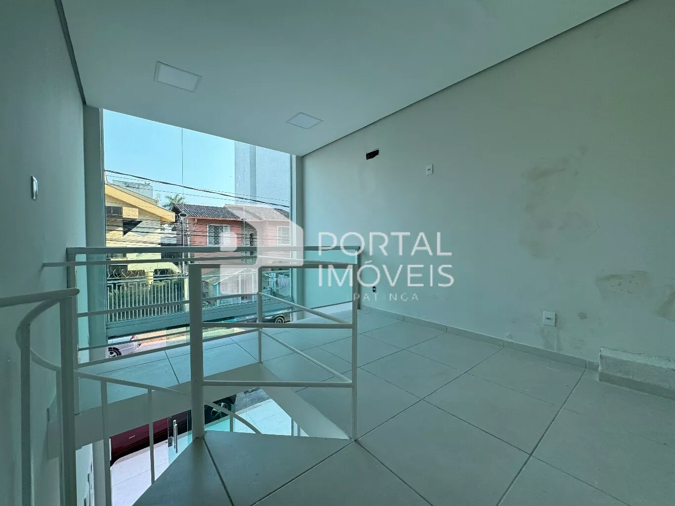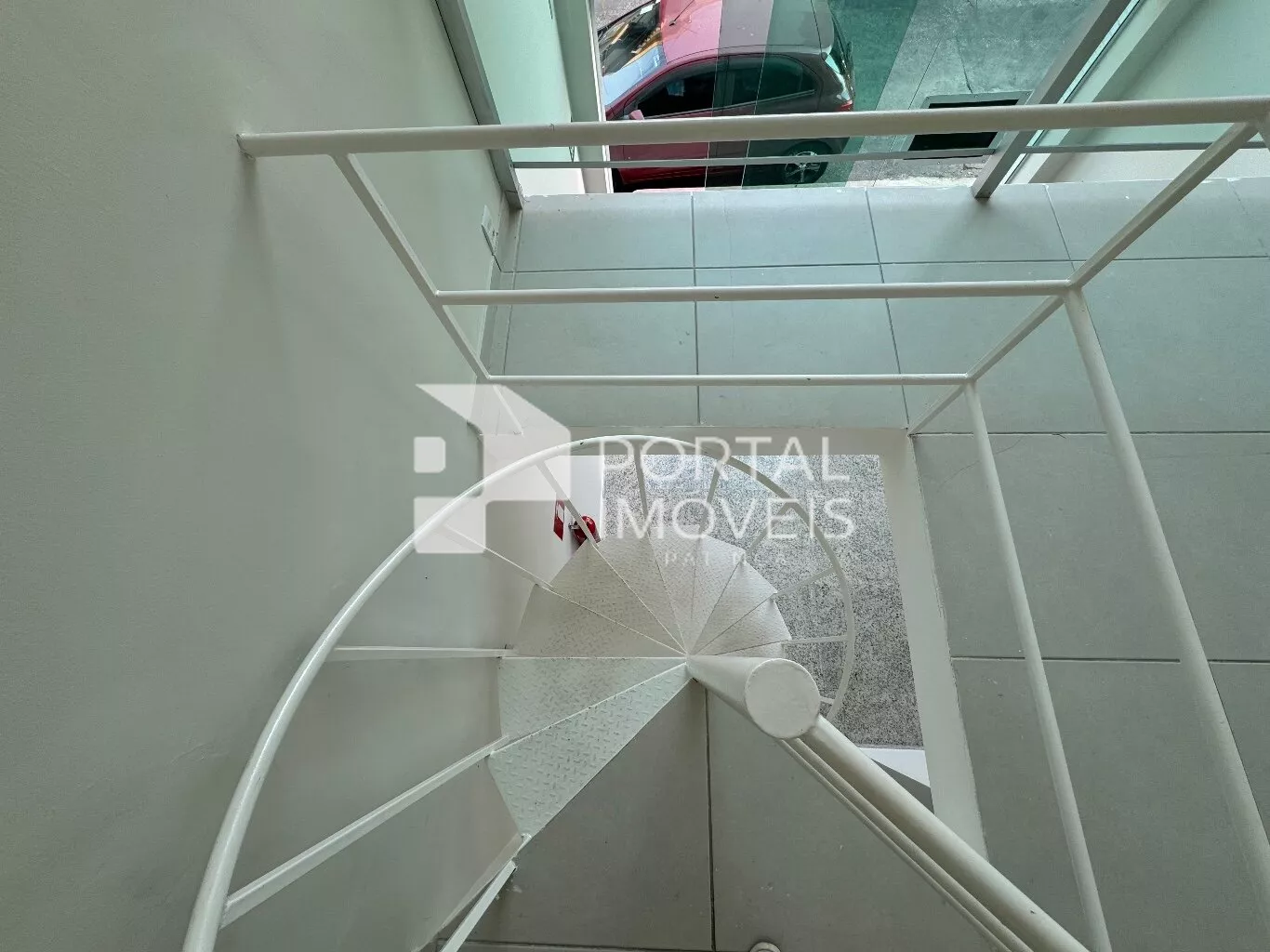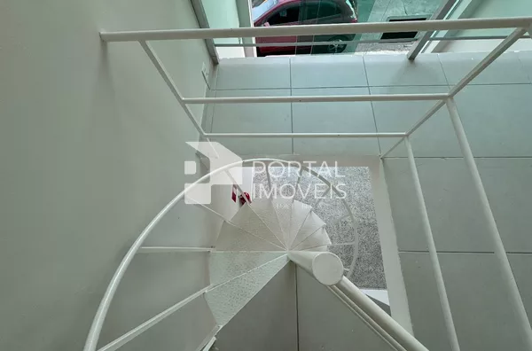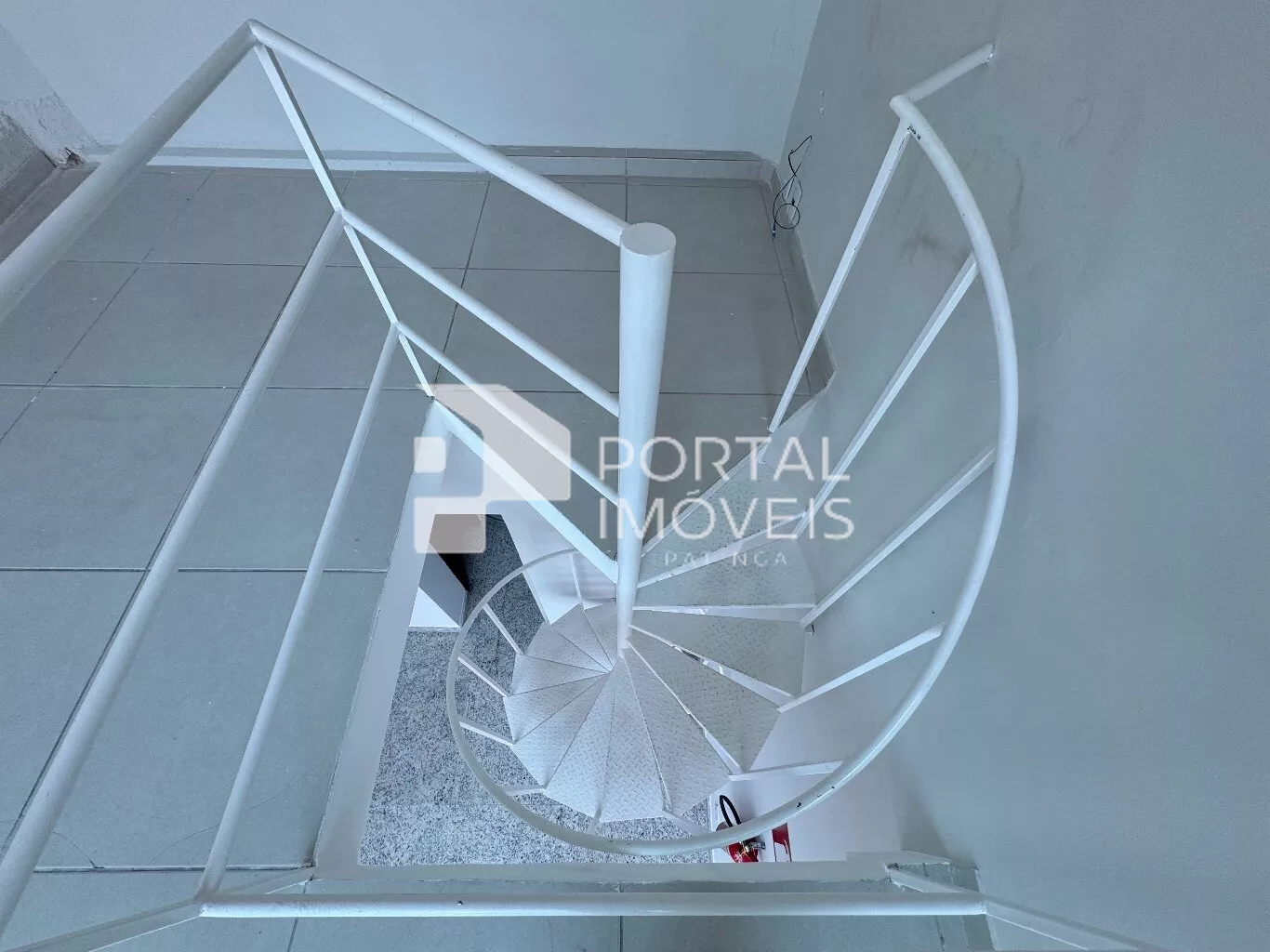 A loja possui um mezanino com escada de ferro em espiral, proporcionando um ambiente charmoso e prático.