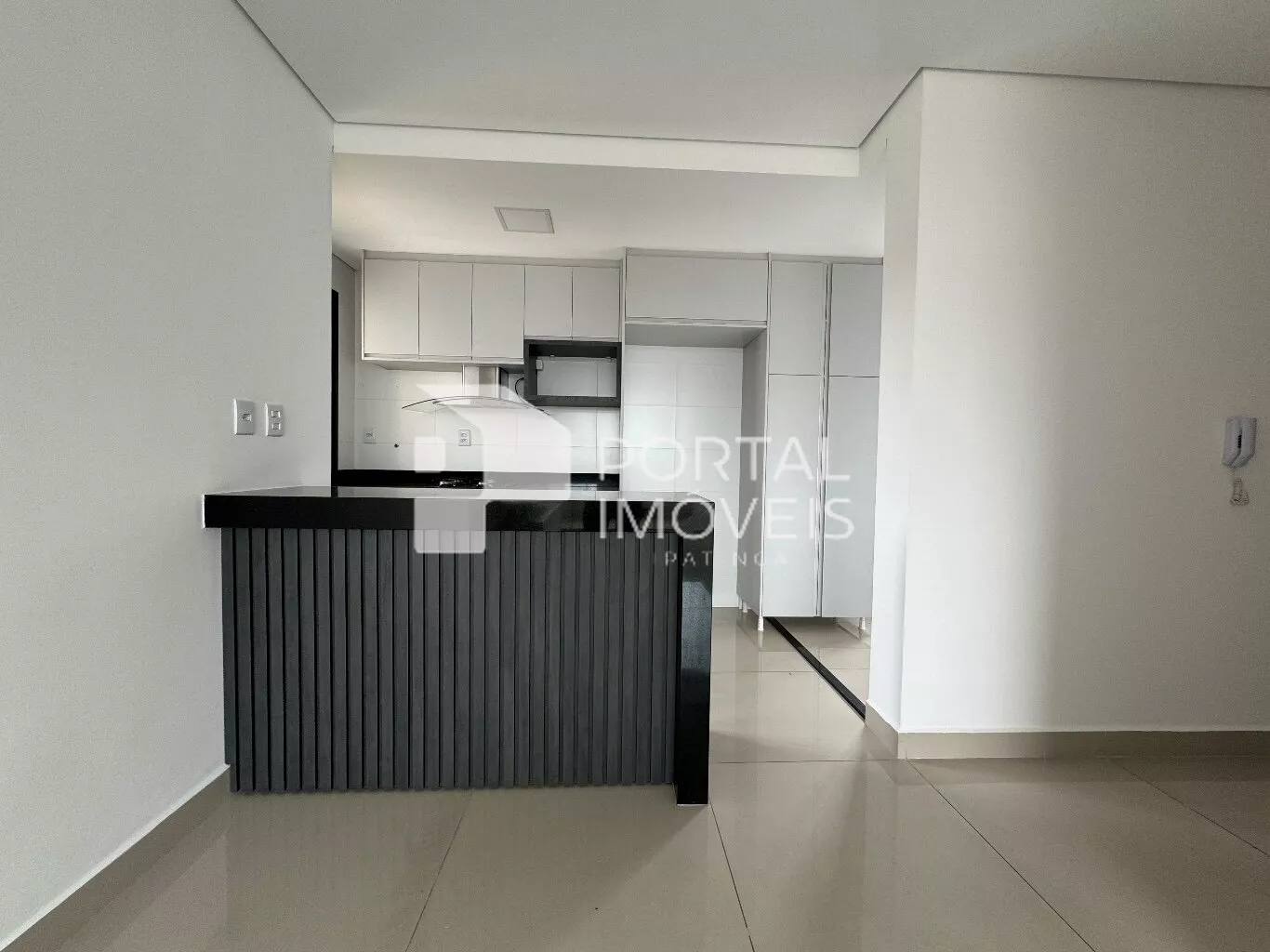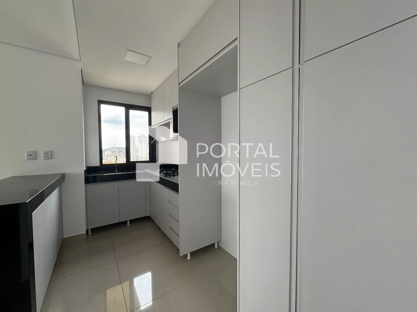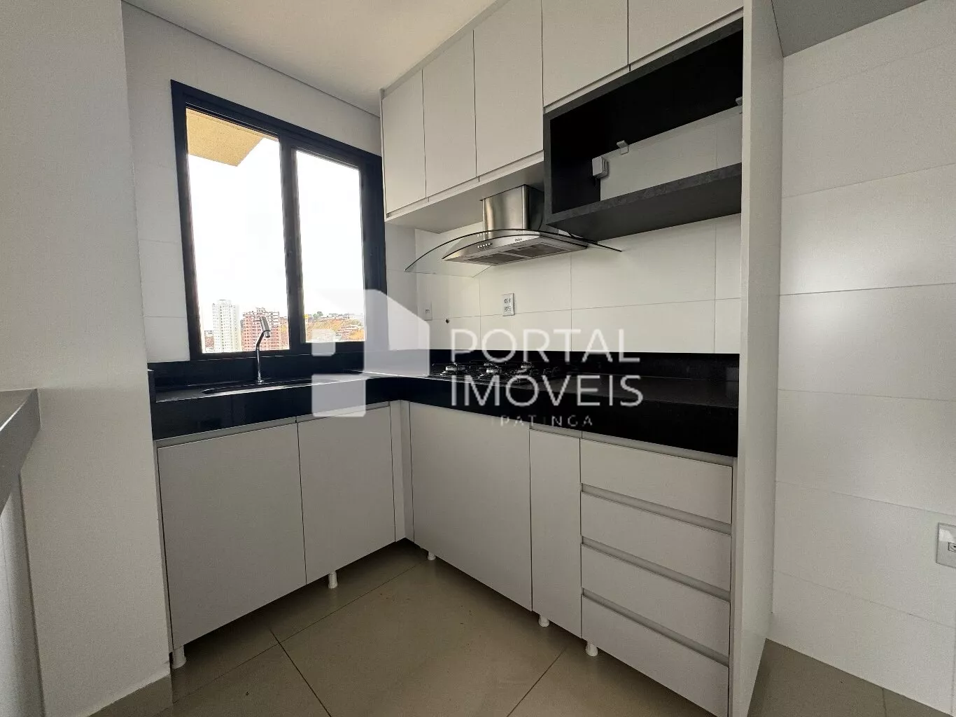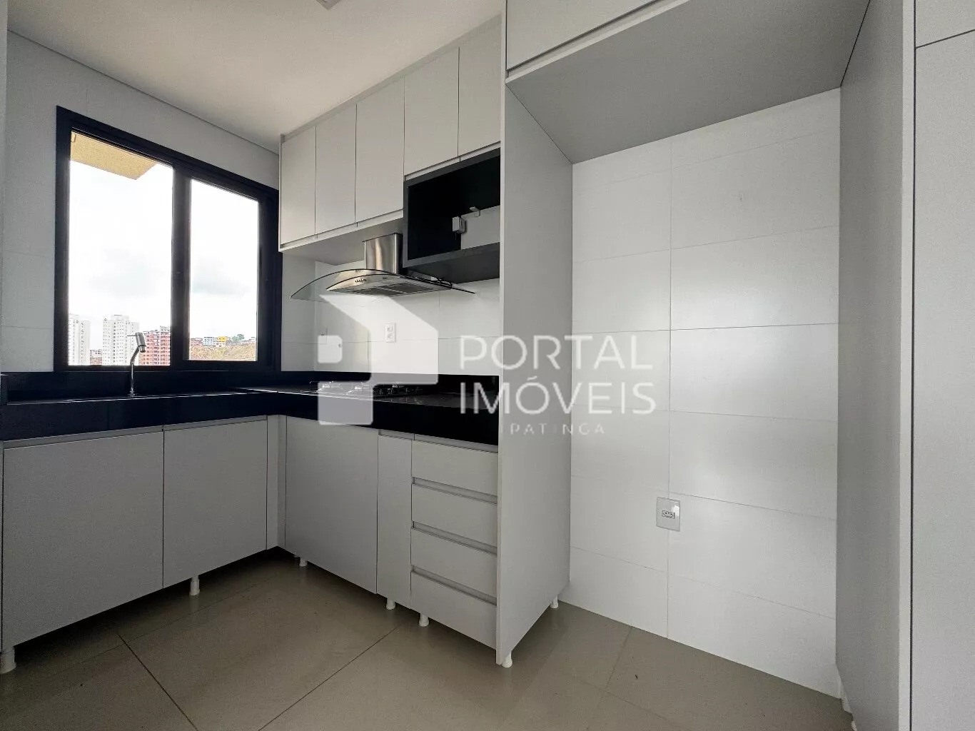 - Cozinha com armários planejados, cooktop e coifa;