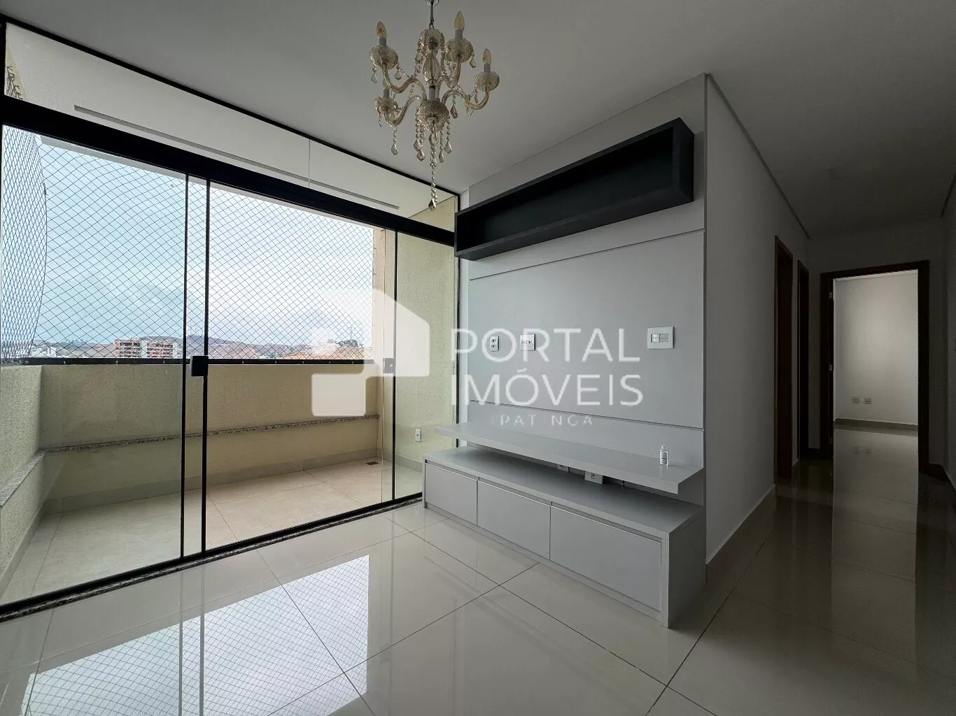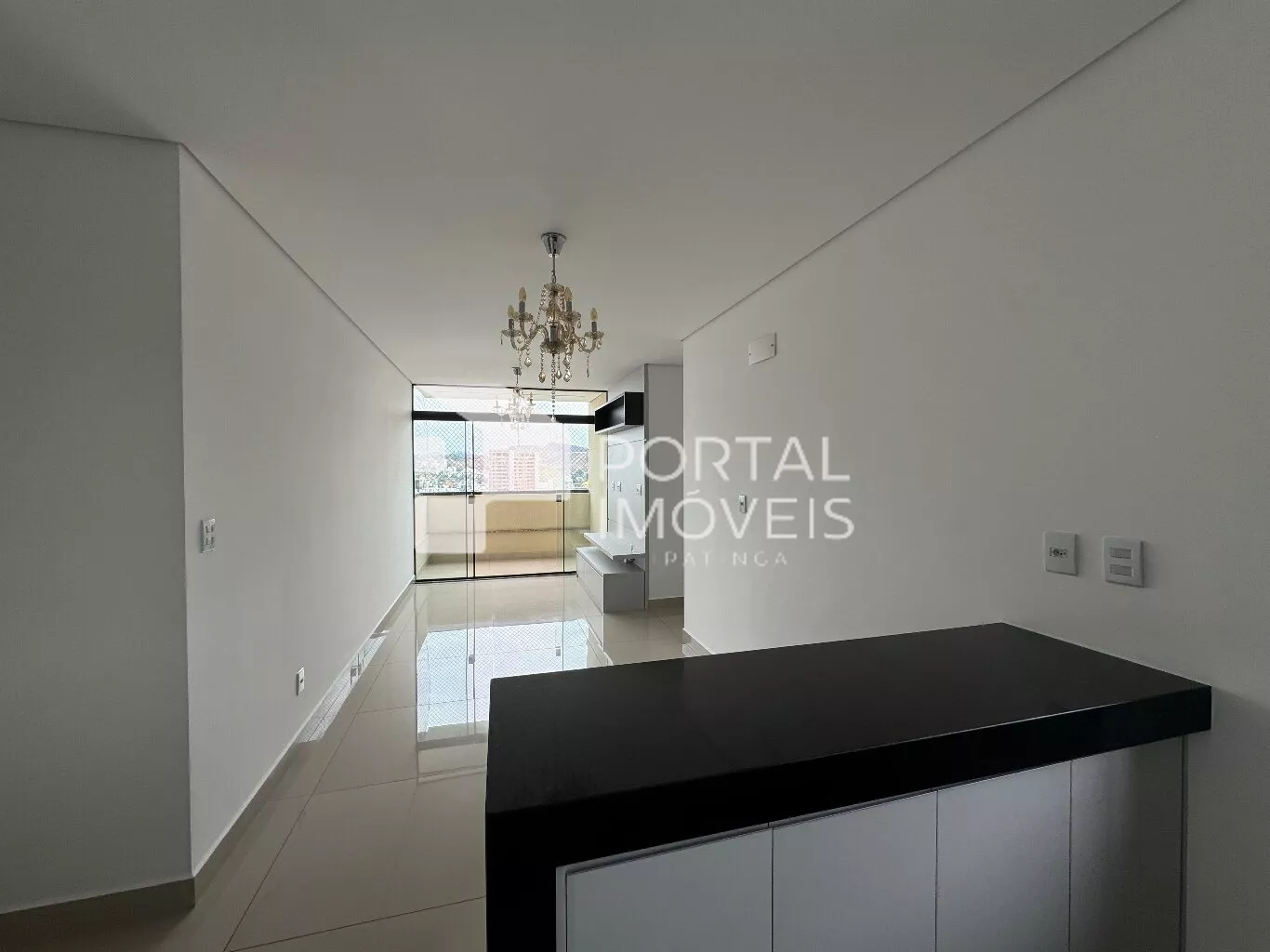 - Sala ampla para dois ambientes integrada com sacada com ar-condicionado;