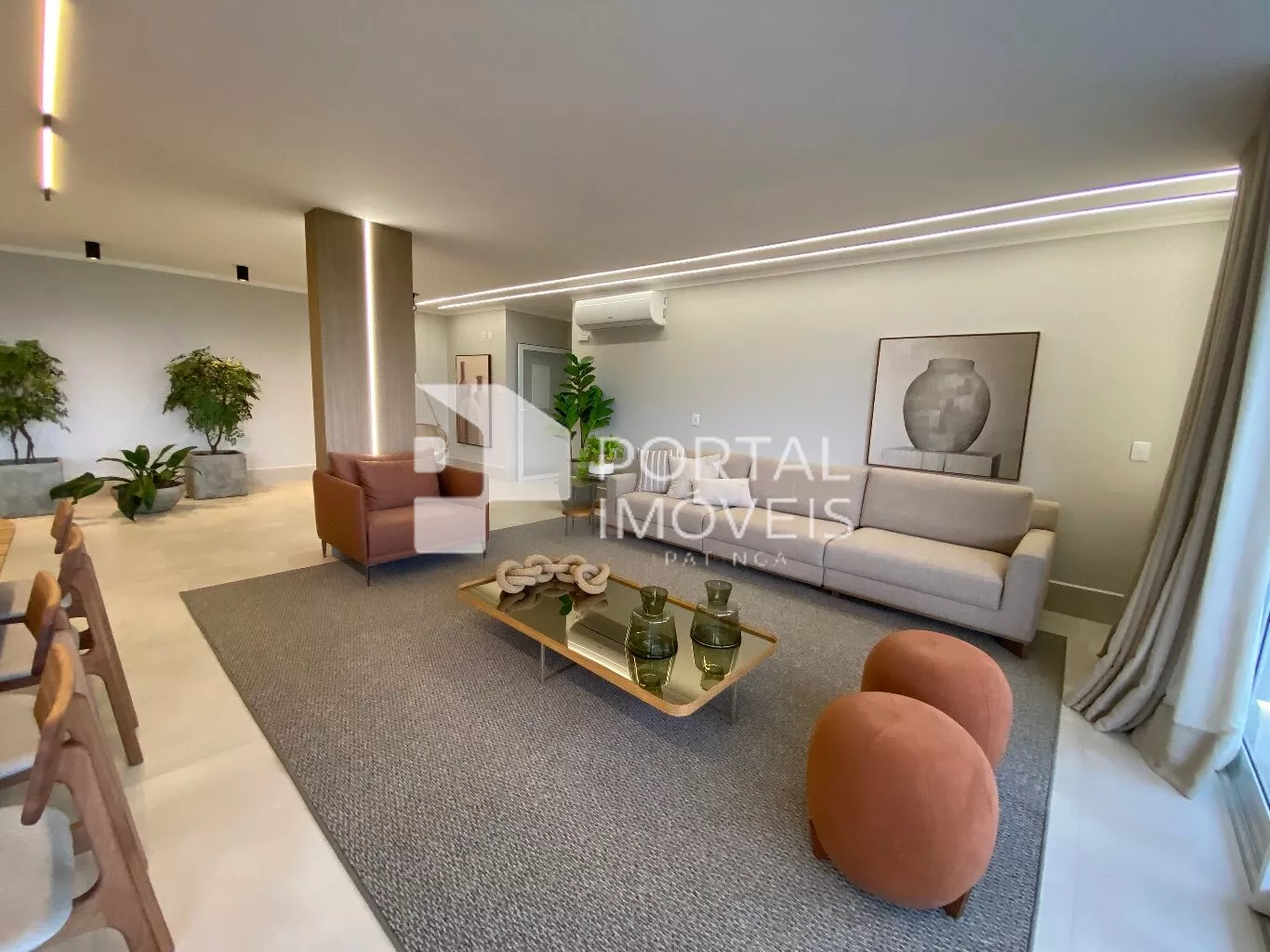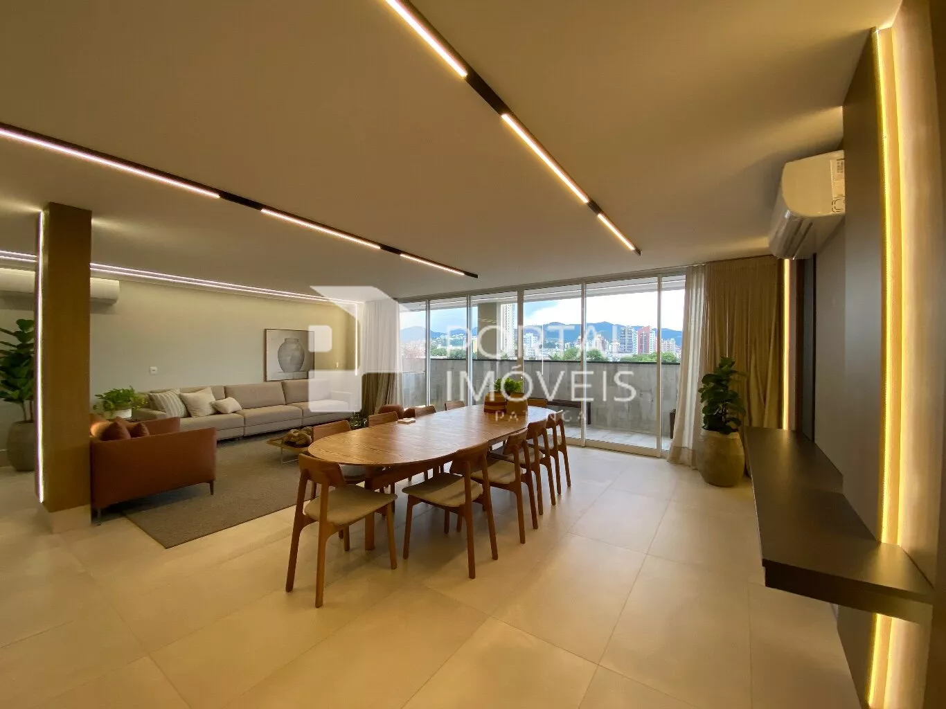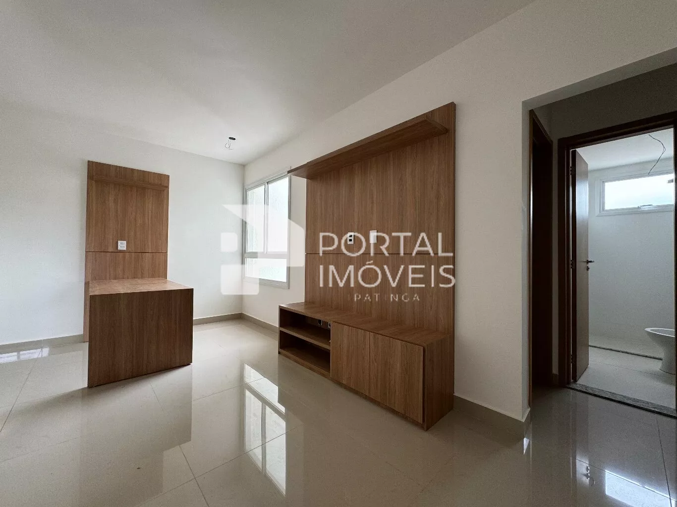 - Sala para dois ambientes, contendo balcão e painel de tv planejado;