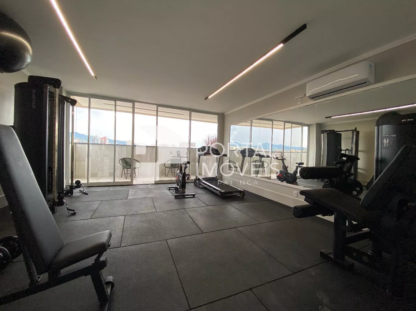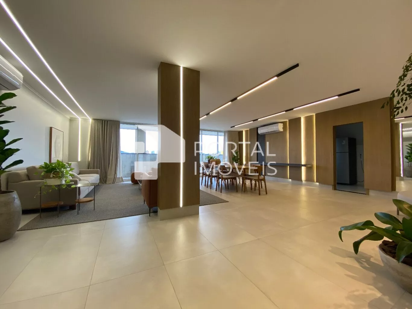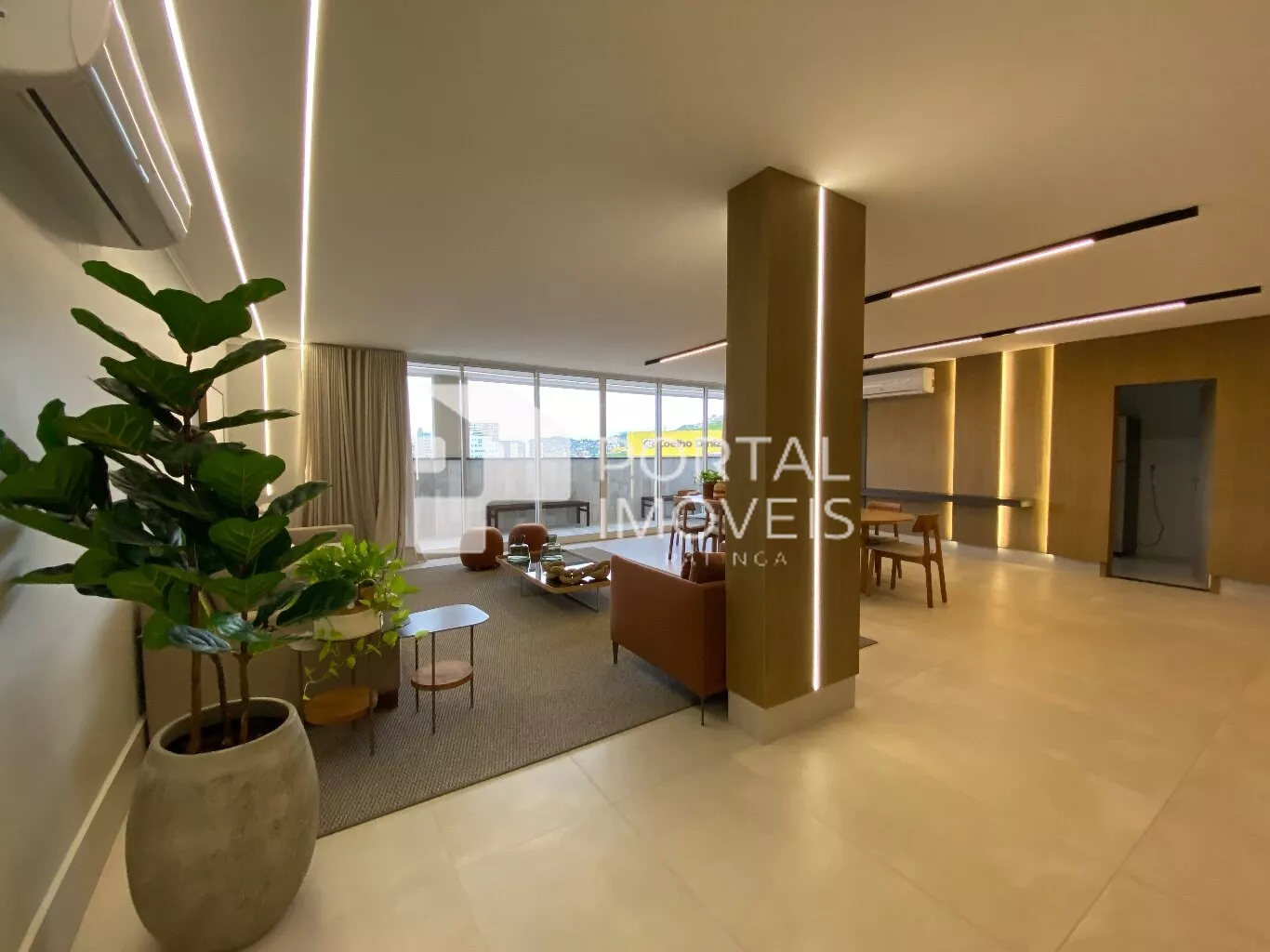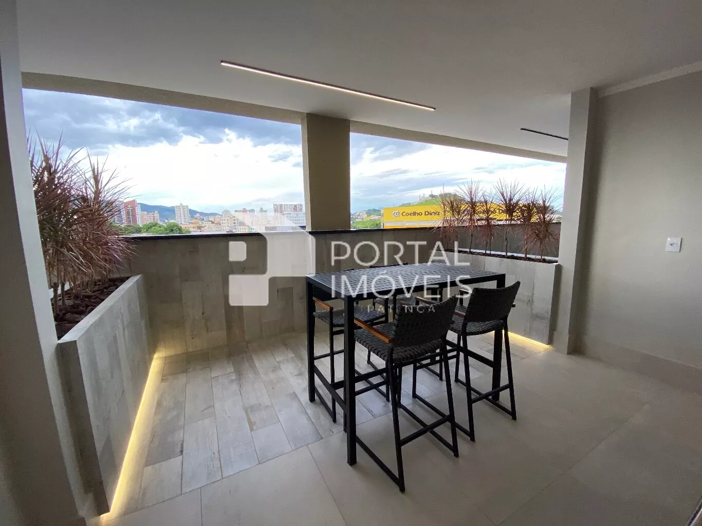 - Sala para dois ambientes, contendo balcão e painel de tv planejado;