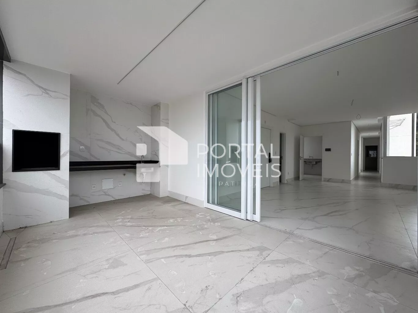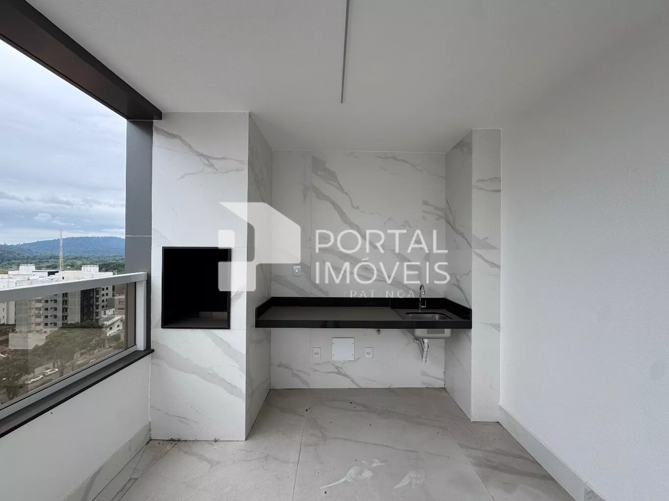🌿 Varanda gourmet com armário e churrasqueira, perfeita para confraternizações