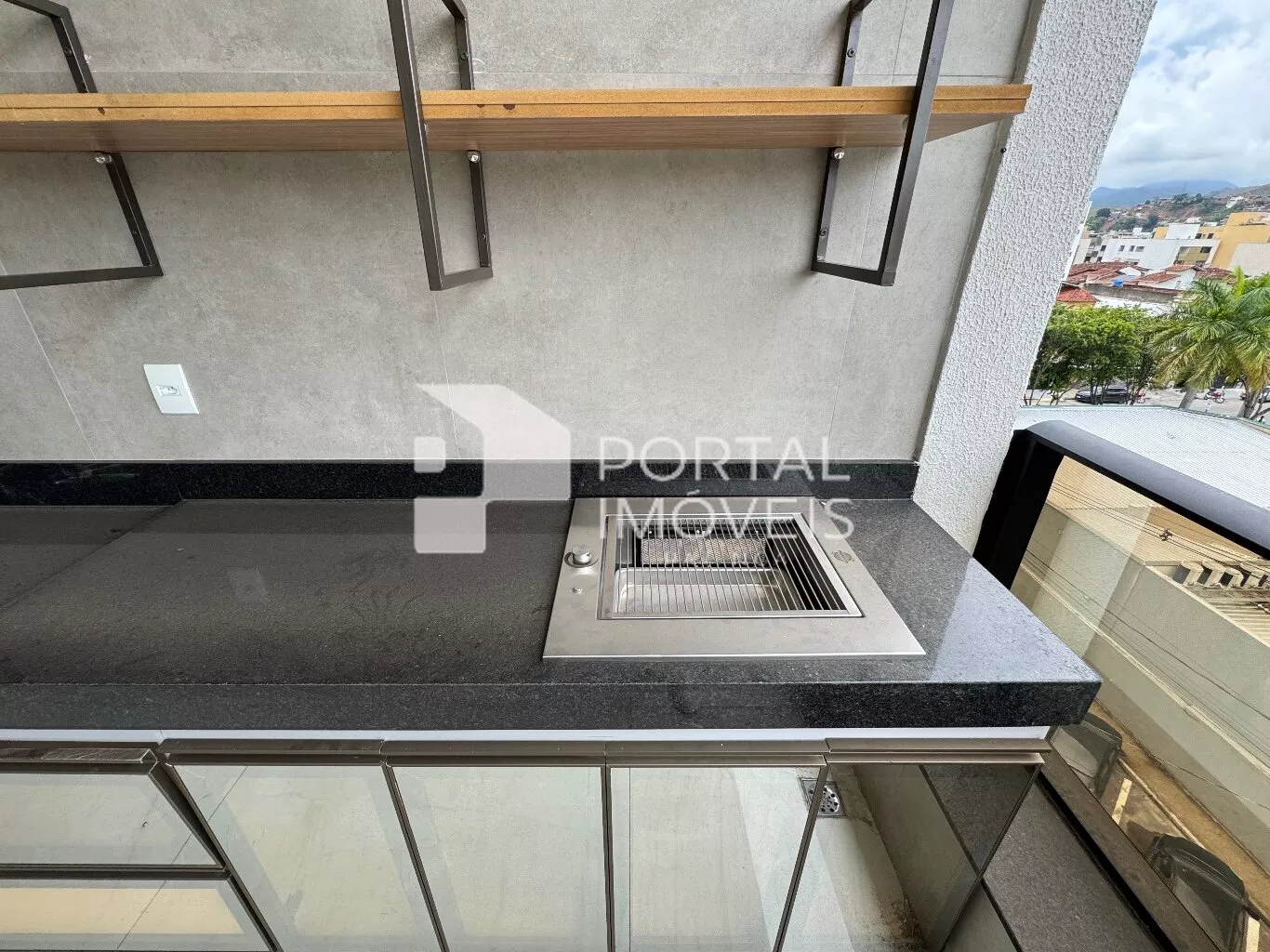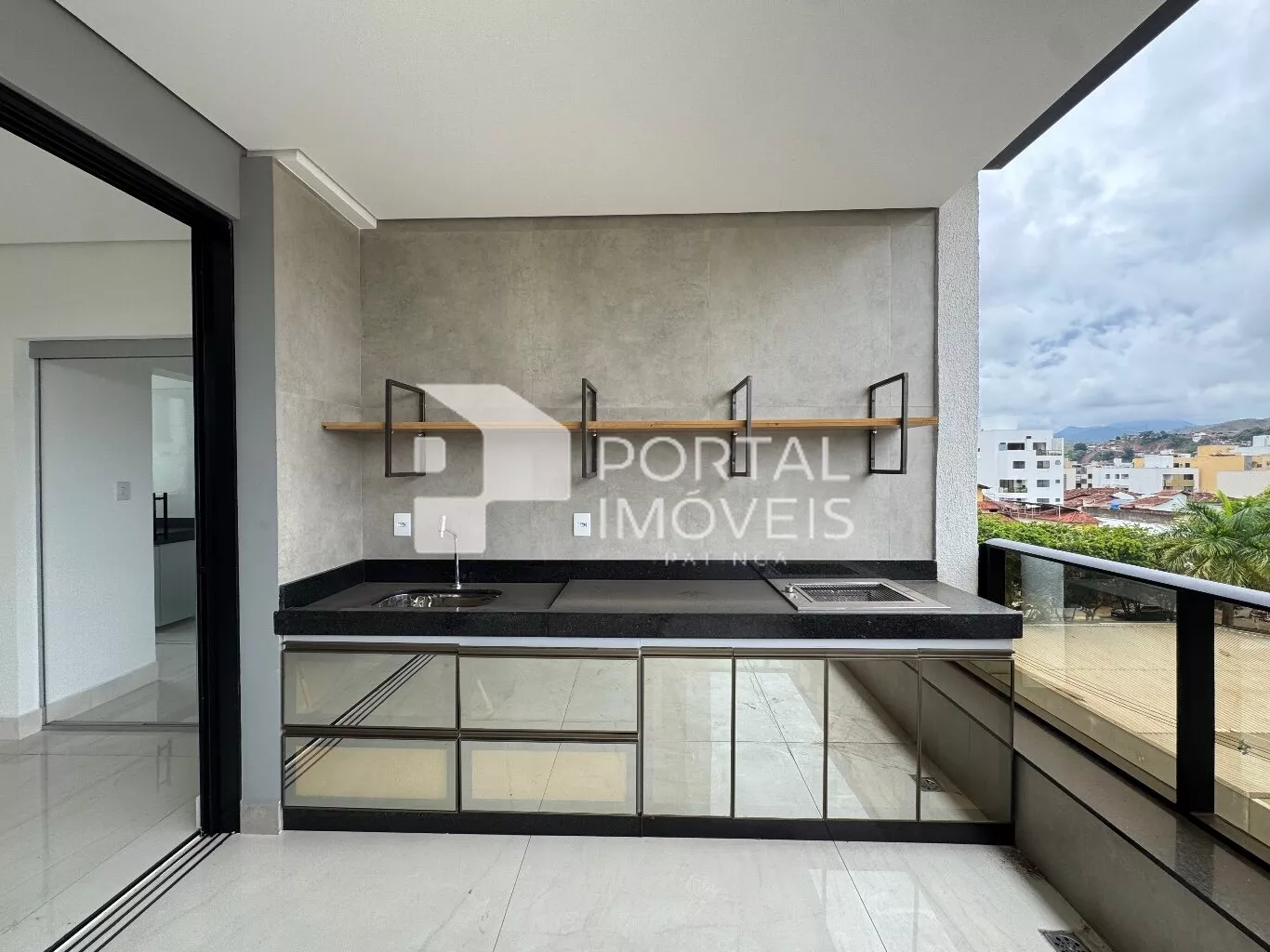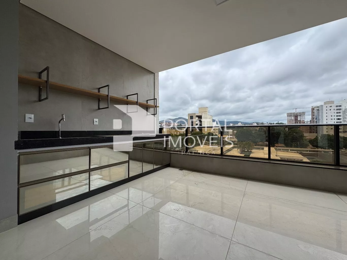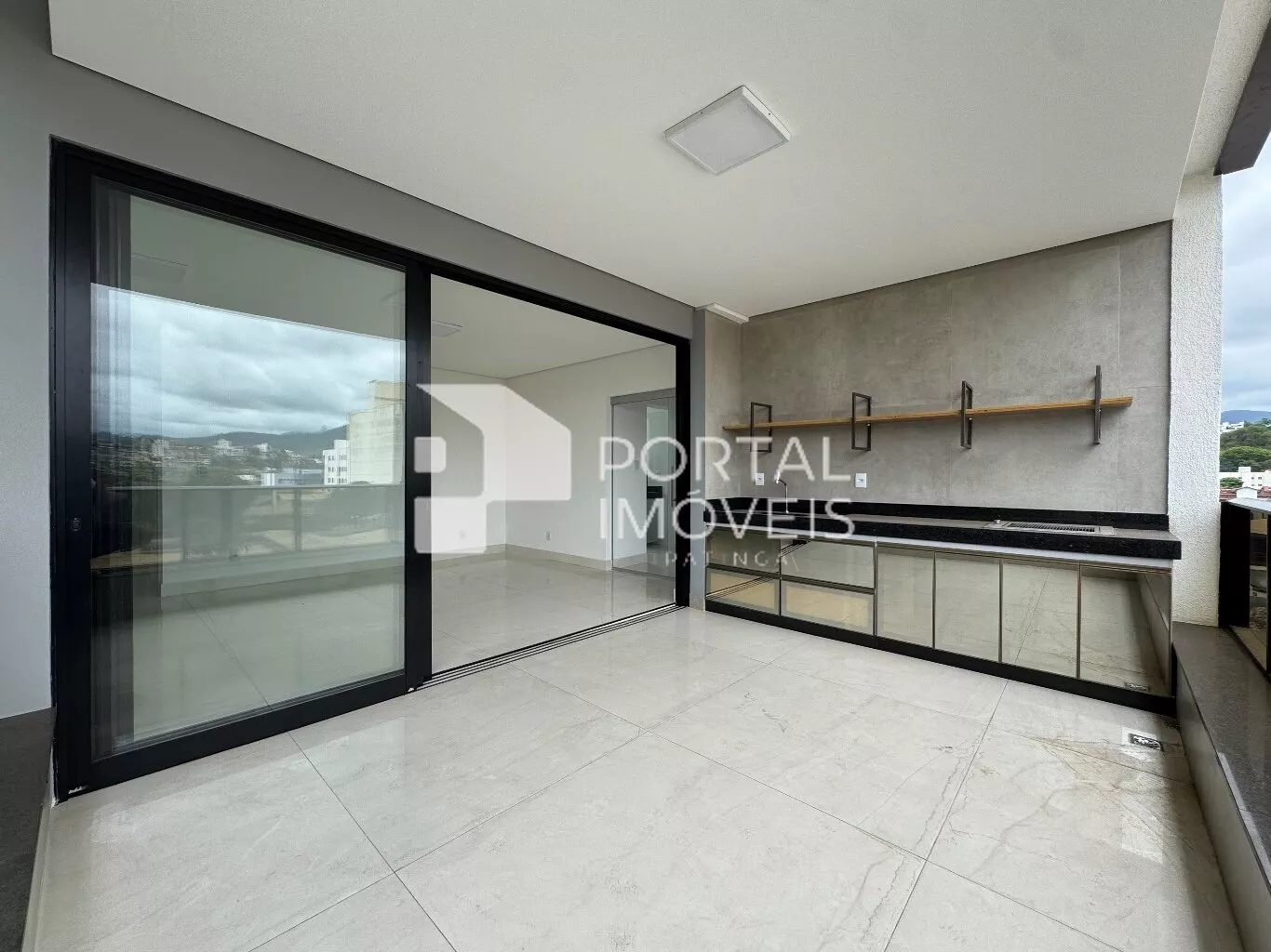 🌅 Varanda gourmet ampla, com bancada, churrasqueira a gás e vista definitiva privilegiada