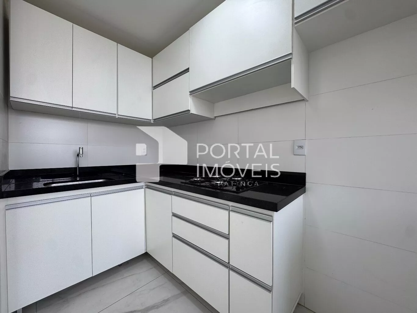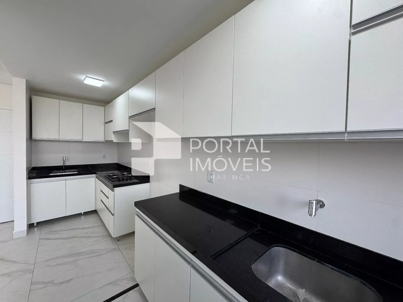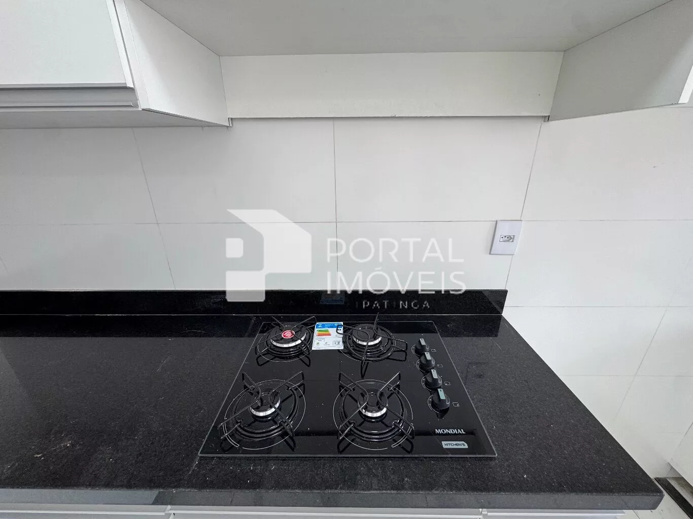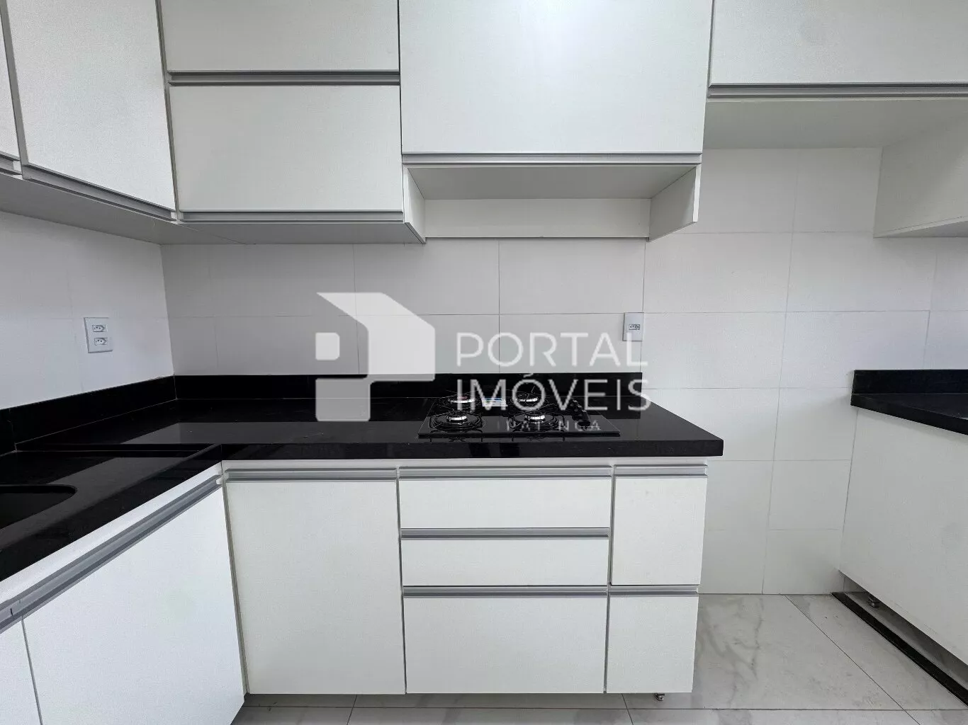 🍽️ Cozinha planejada com cooktop, armários superiores e inferiores, integrada à área de serviço