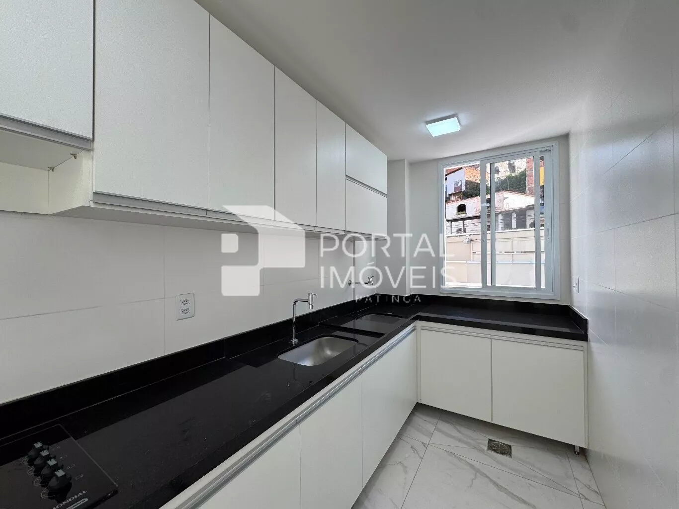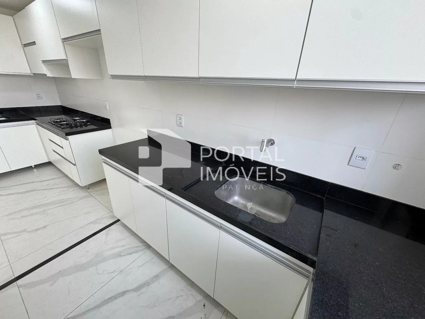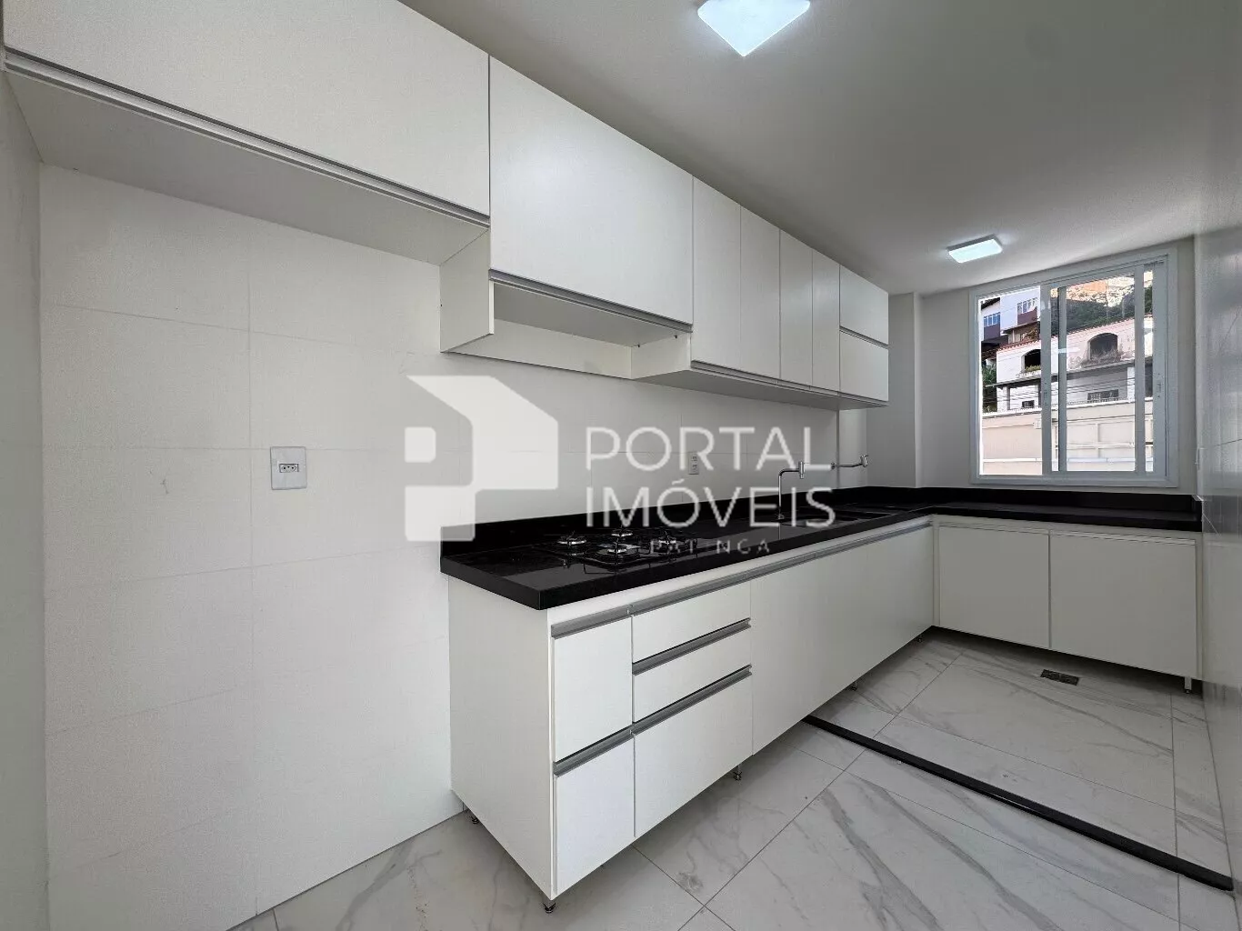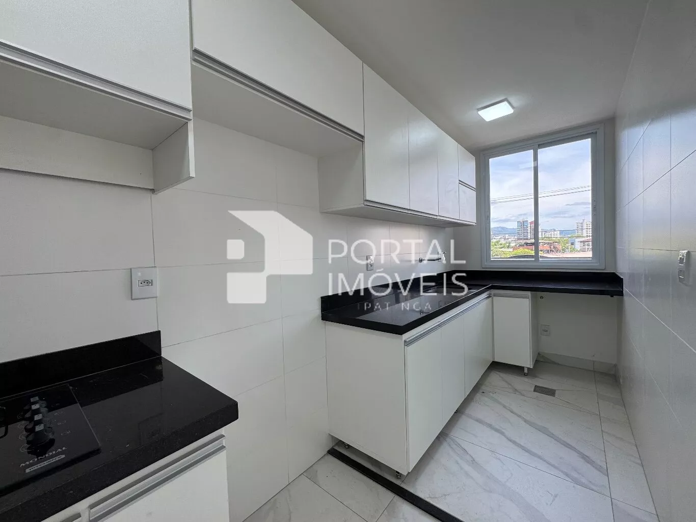 🍽️ Cozinha planejada com cooktop, armários superiores e inferiores, integrada à área de serviço