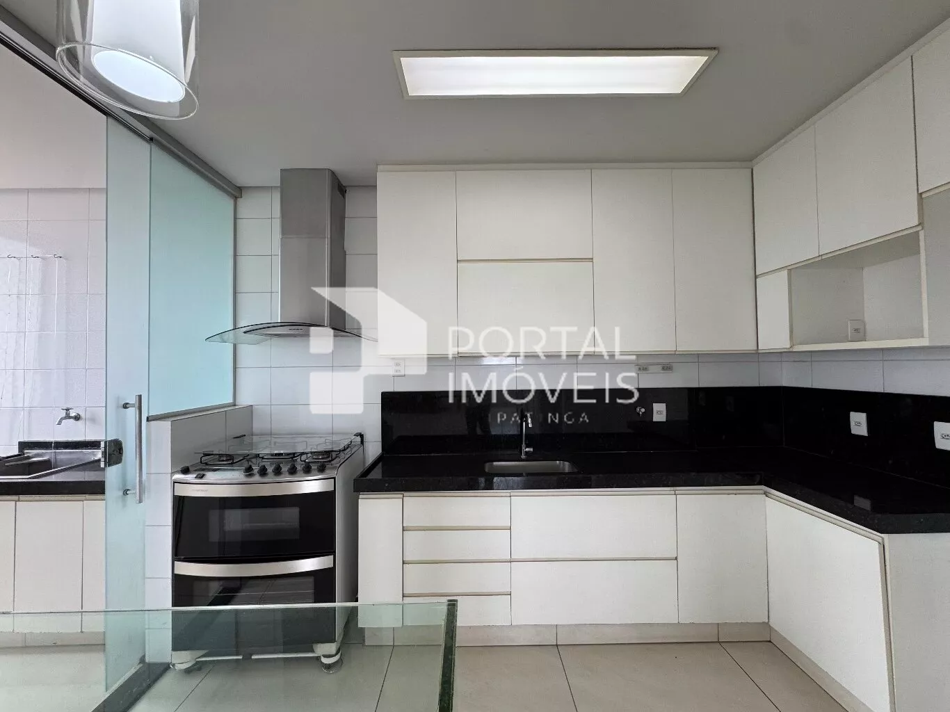 🍽️ Cozinha planejada, equipada com armários, fogão com forno e coifa