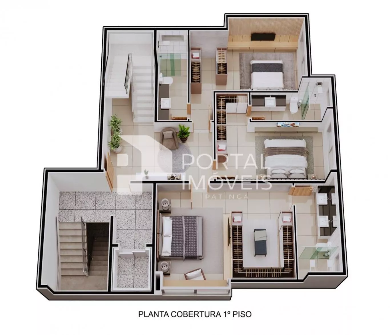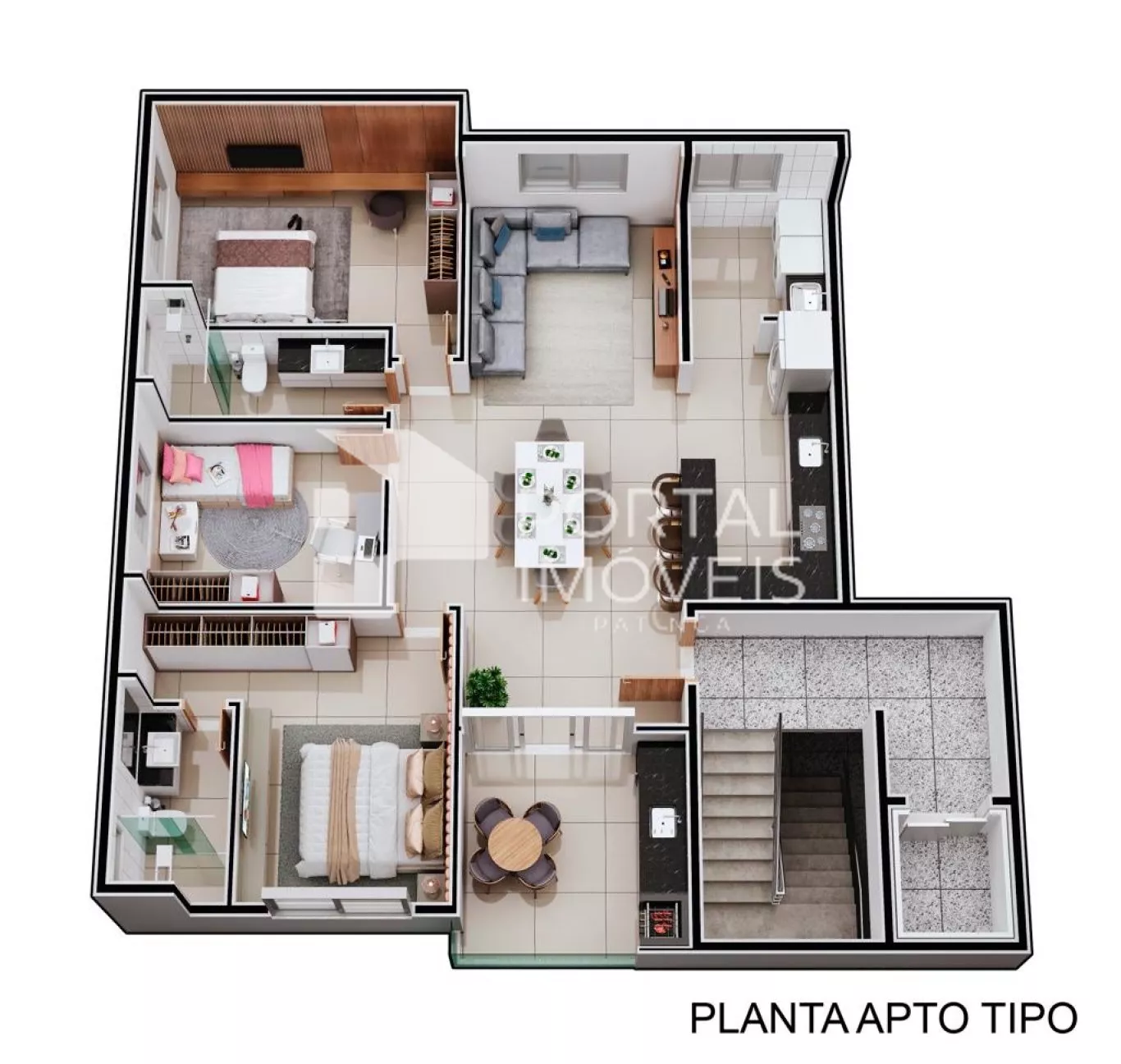 ▪️3 quartos, sendo 1 suíte ampla ;