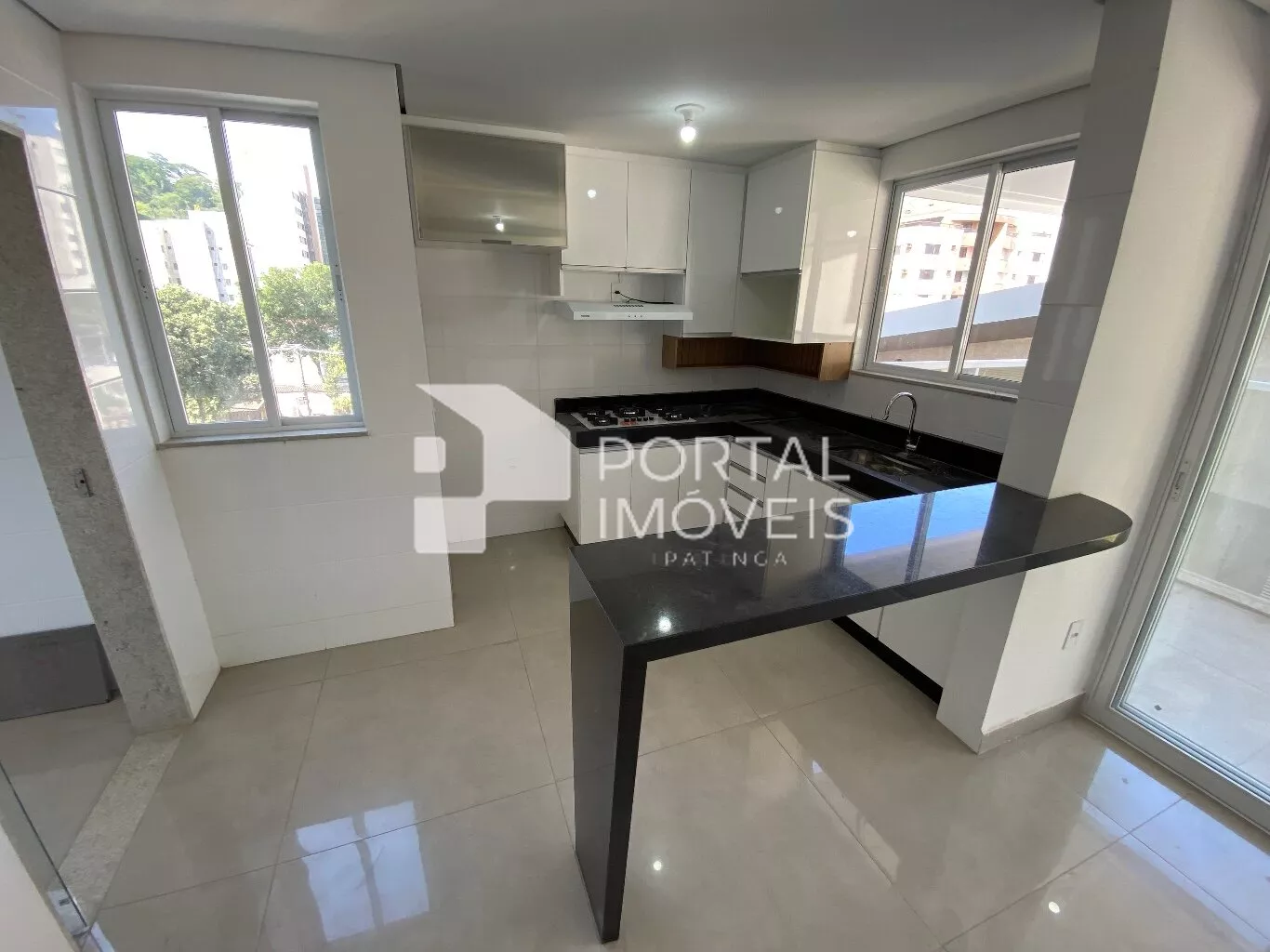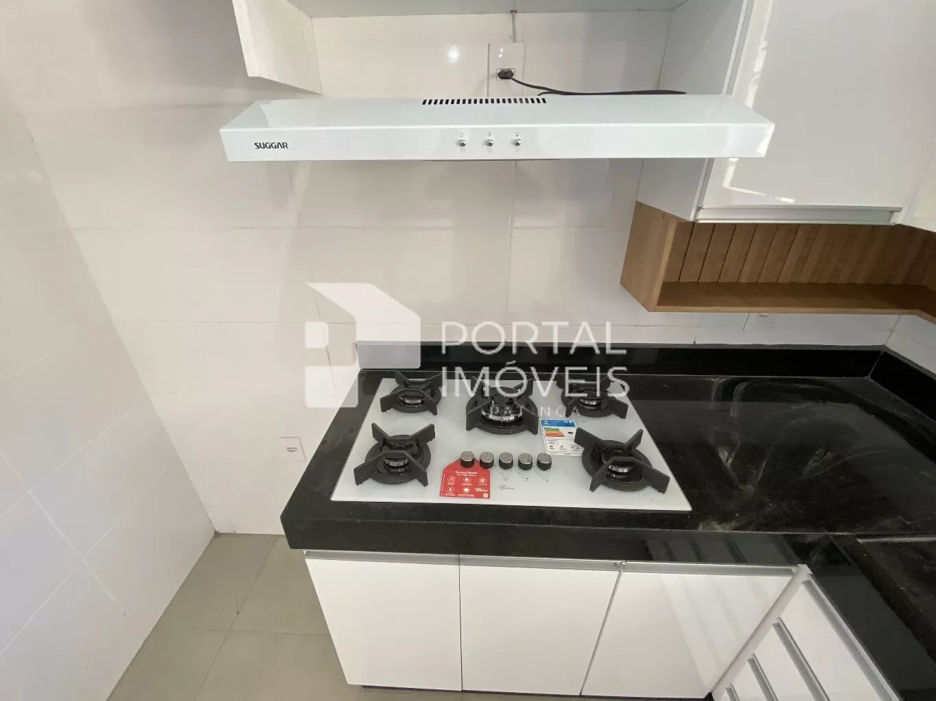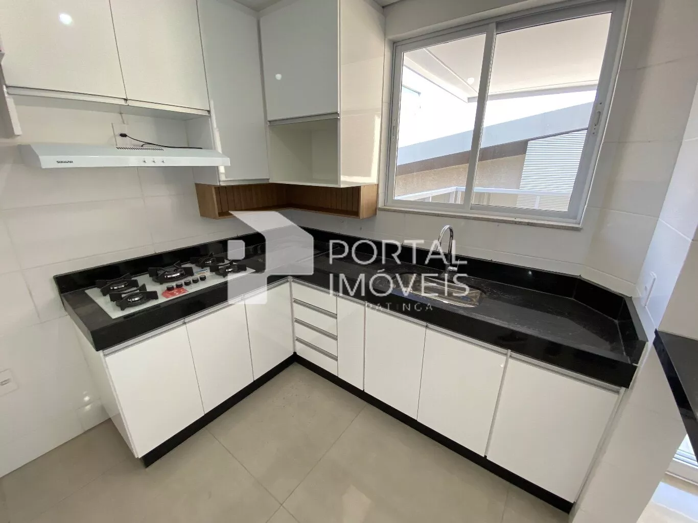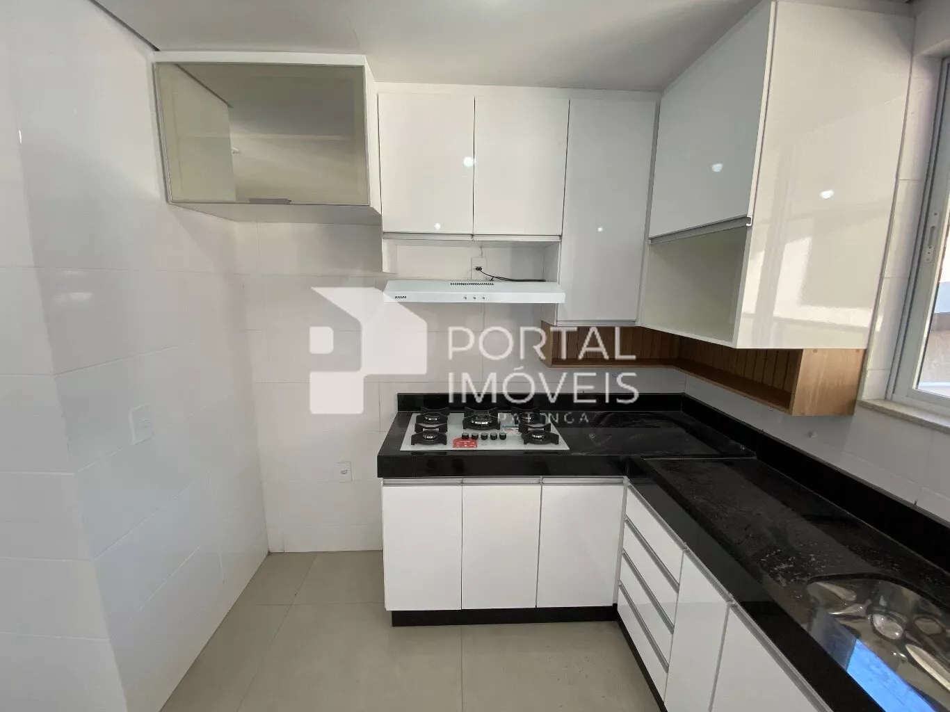 ✅ Cozinha com armários planejados, bancada em granito, fogão cooktop e coifa;