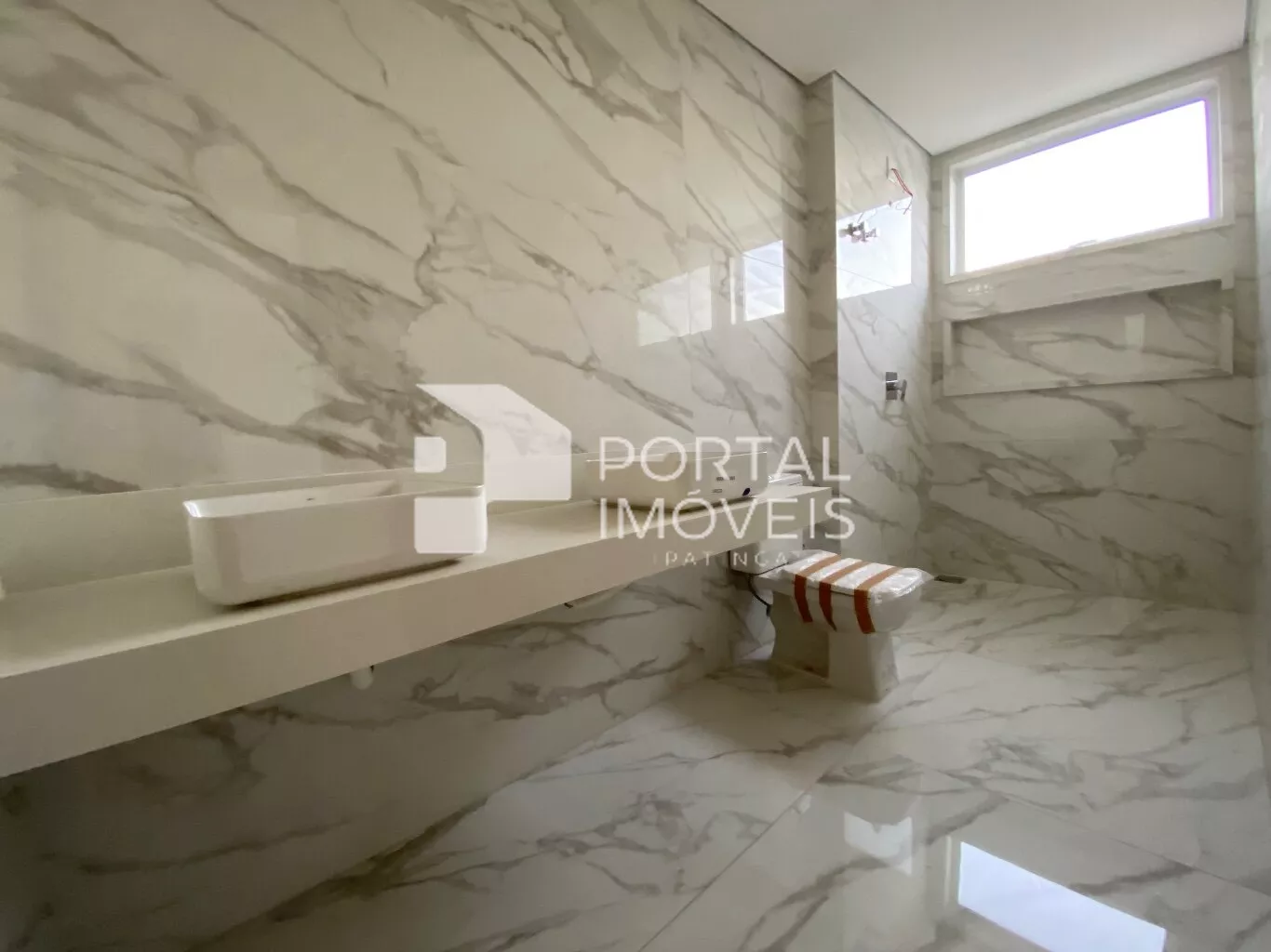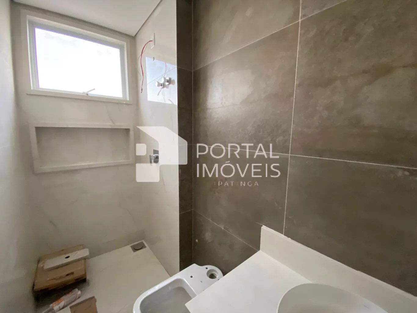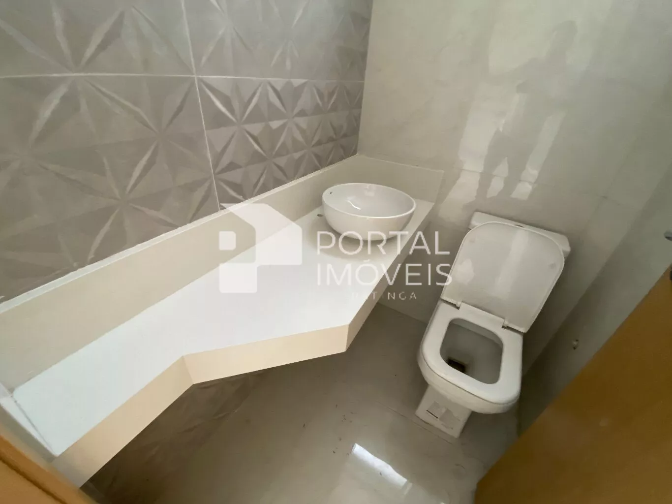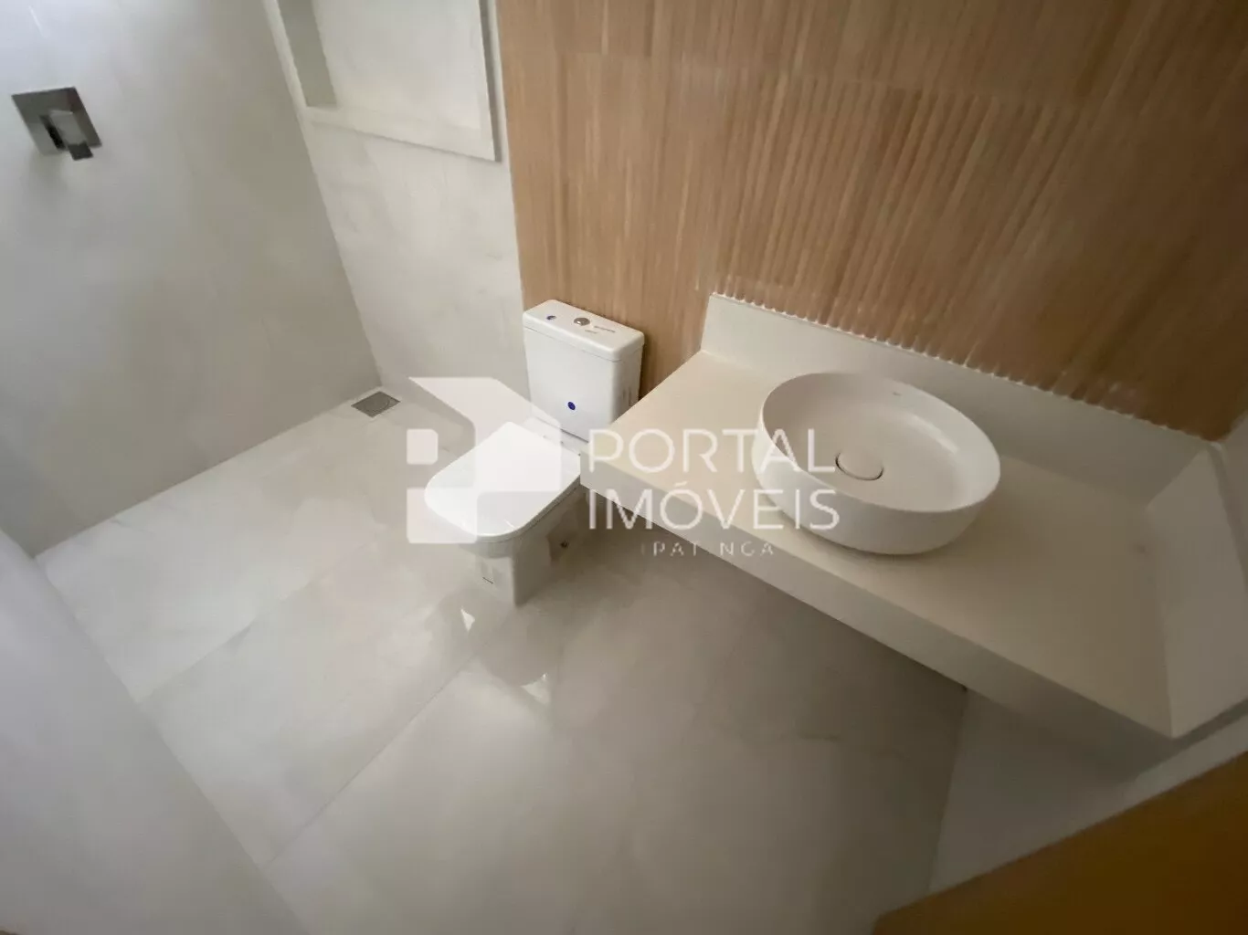 Banheiro social com moderno acabamento;
