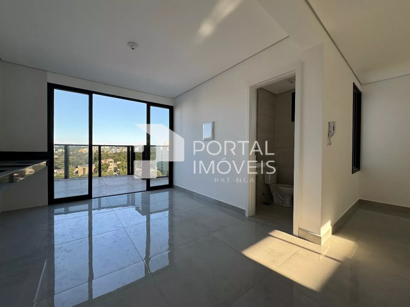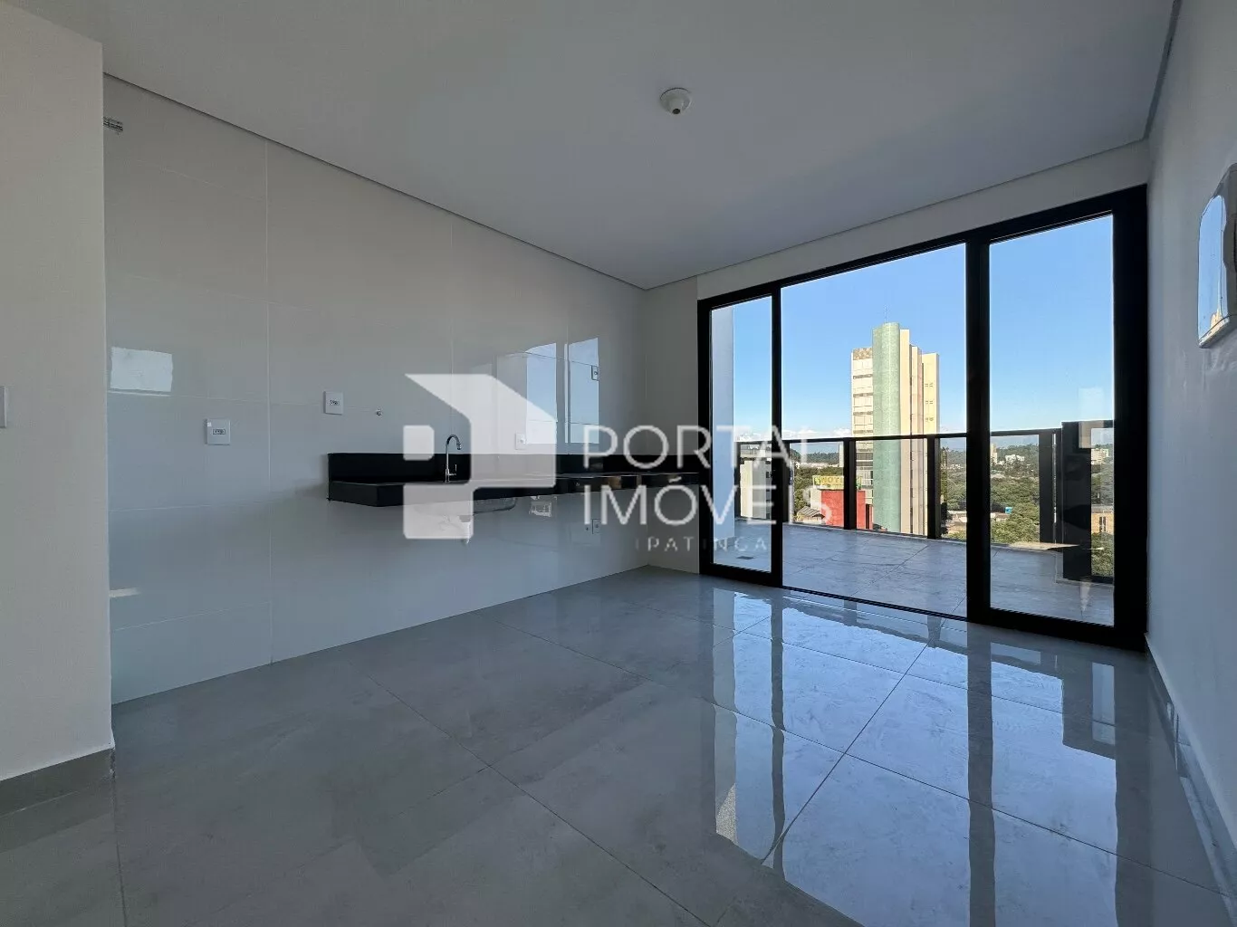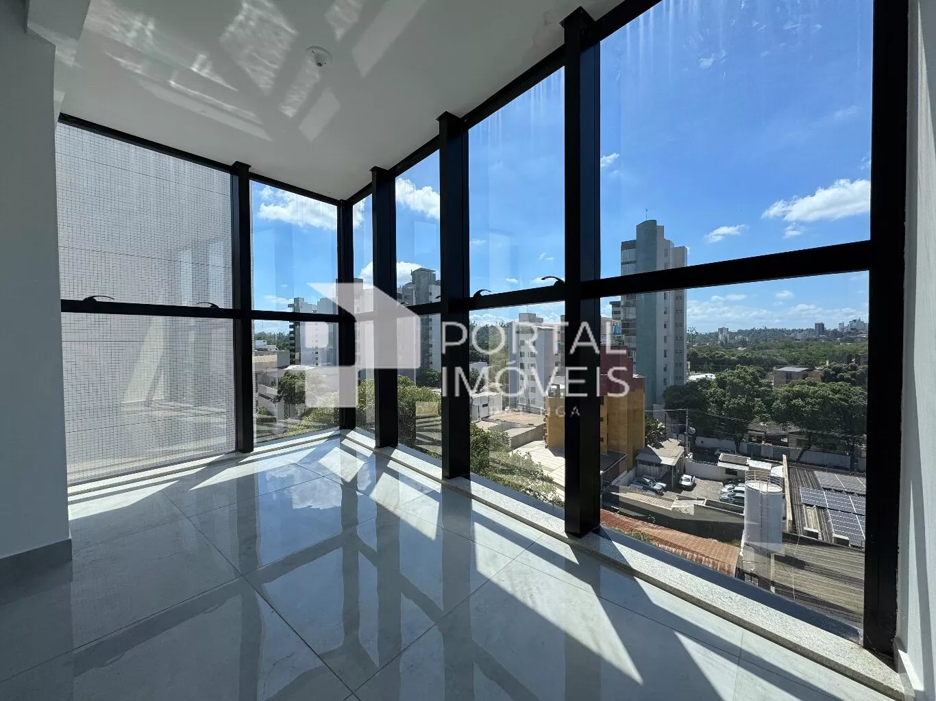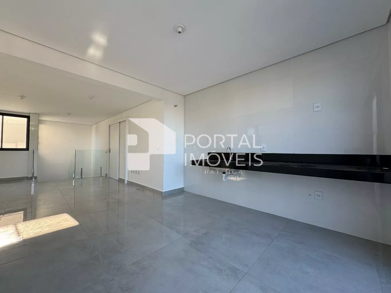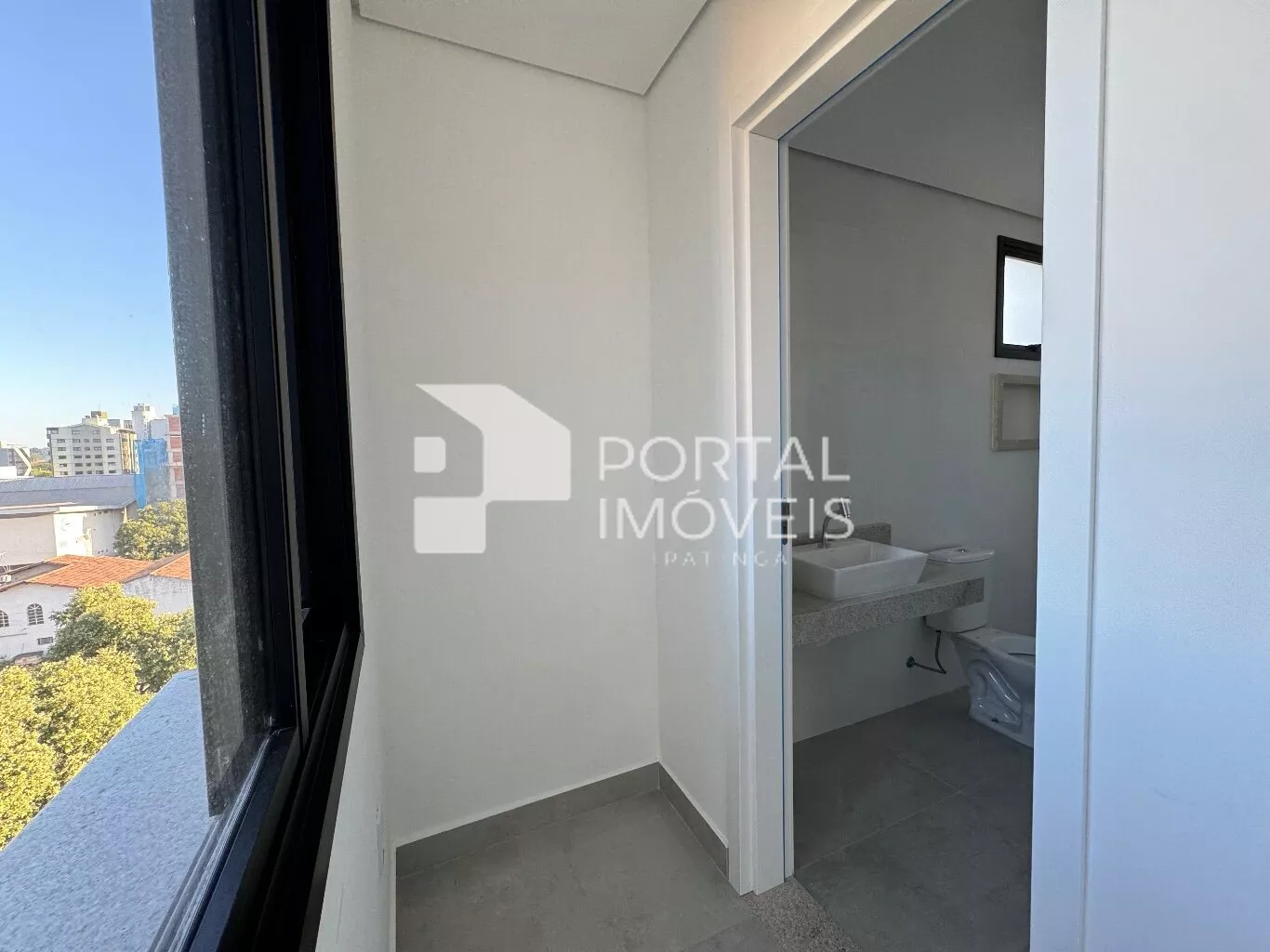 Área aberta com guarda-corpo de vidro, ideal para receber amigos e apreciar a vista