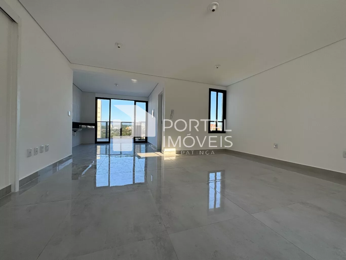 Sala ampla com ambientes integrados (estar/jantar)