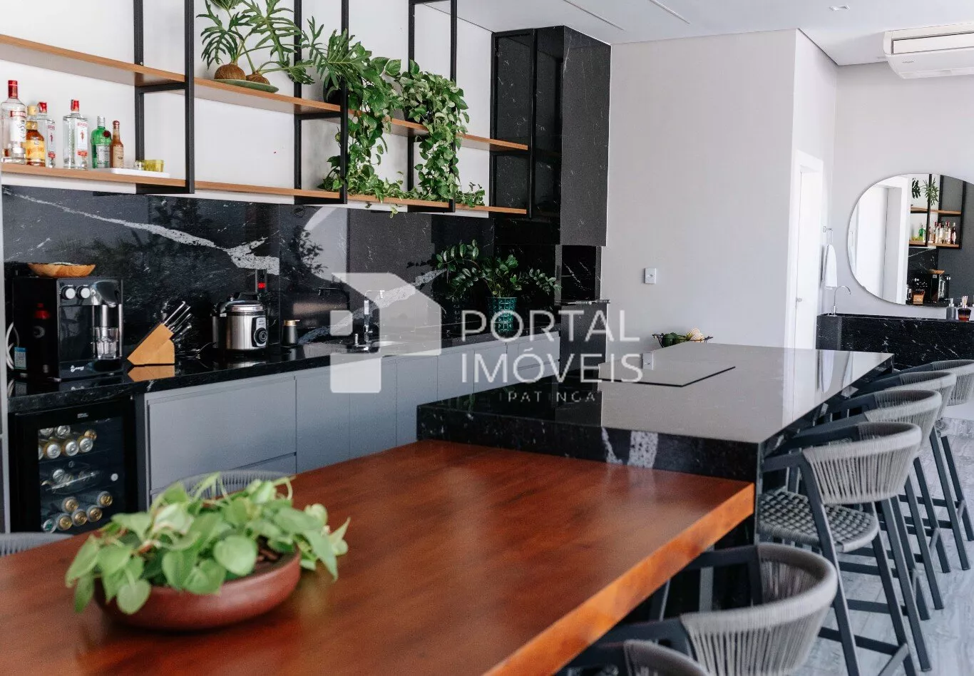 🍖 Área gourmet integrada com a piscina com prainha