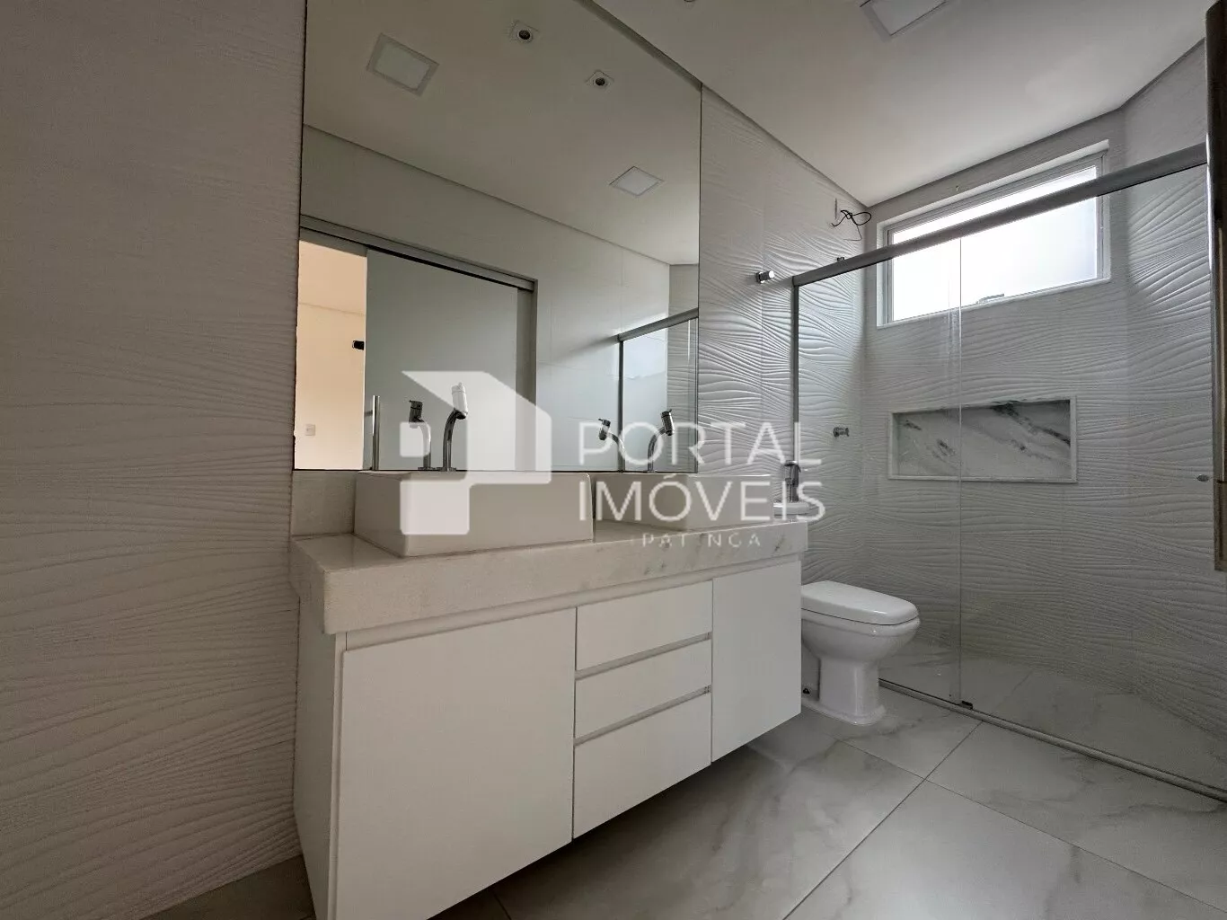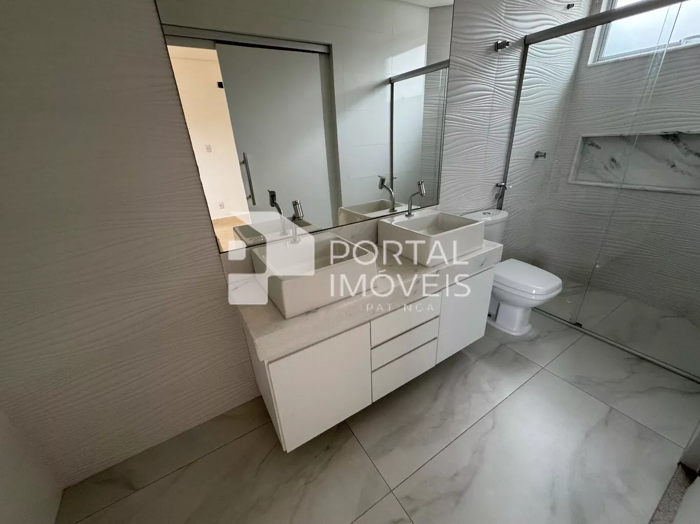 ✅ Lavabo + banheiro social + banheiro da suíte com armários, box e espelhos