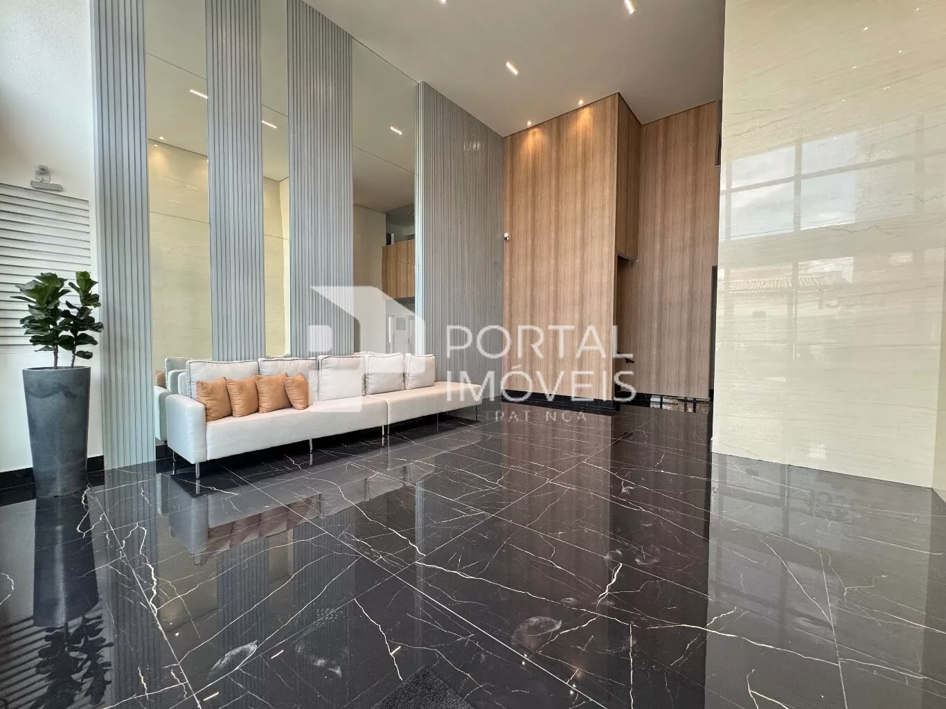 Hall de entrada imponente com pé direito duplo e segurança integrada